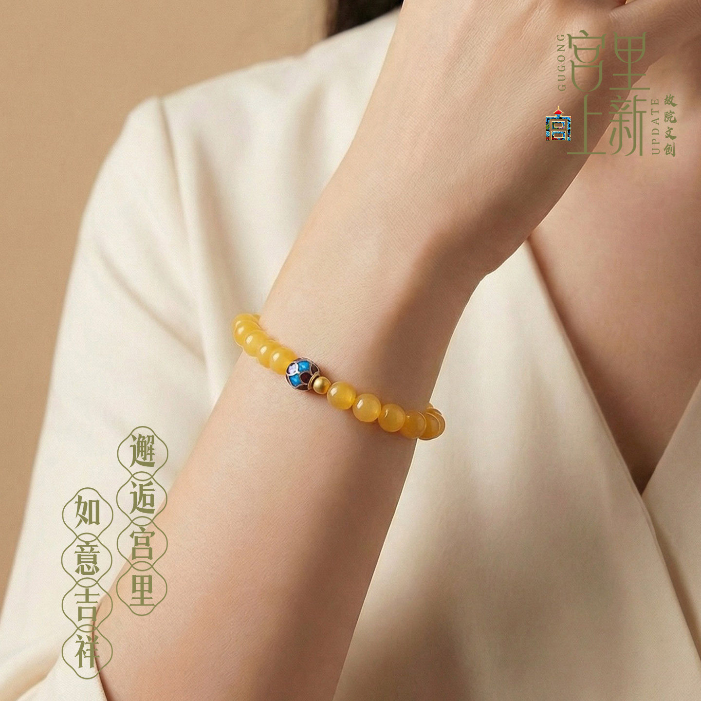 宫里上新黄玉手串男士天然缅黄黄色玉石手链女串珠生日礼物送妈妈