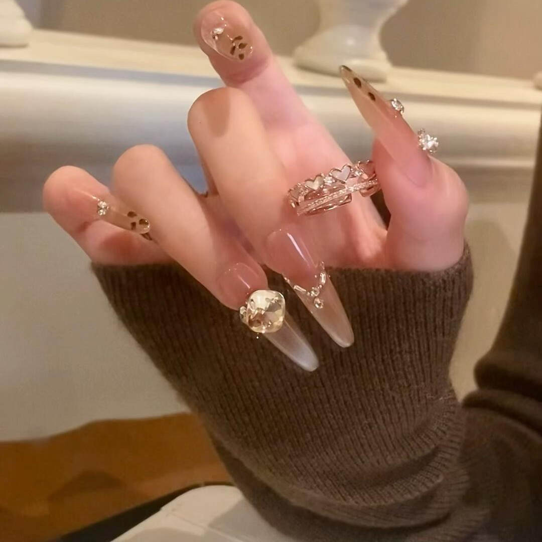 复古满钻爱心仿贝壳双层戒指女精致轻奢高级感食指戒气质百搭指环