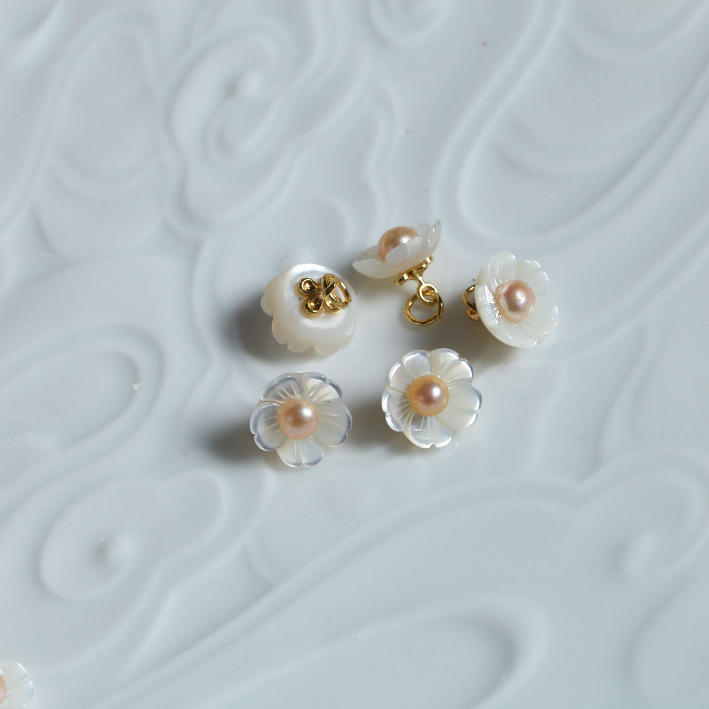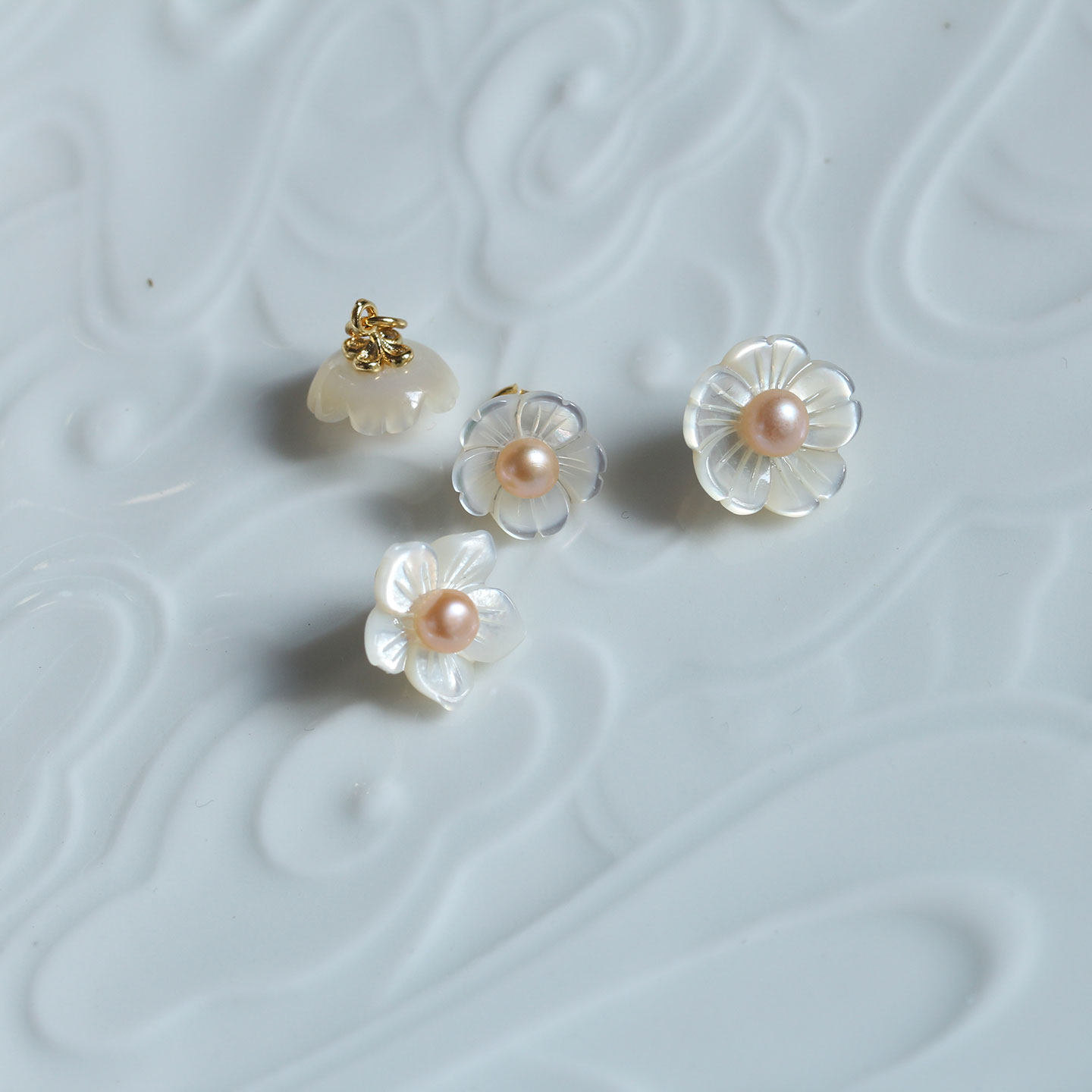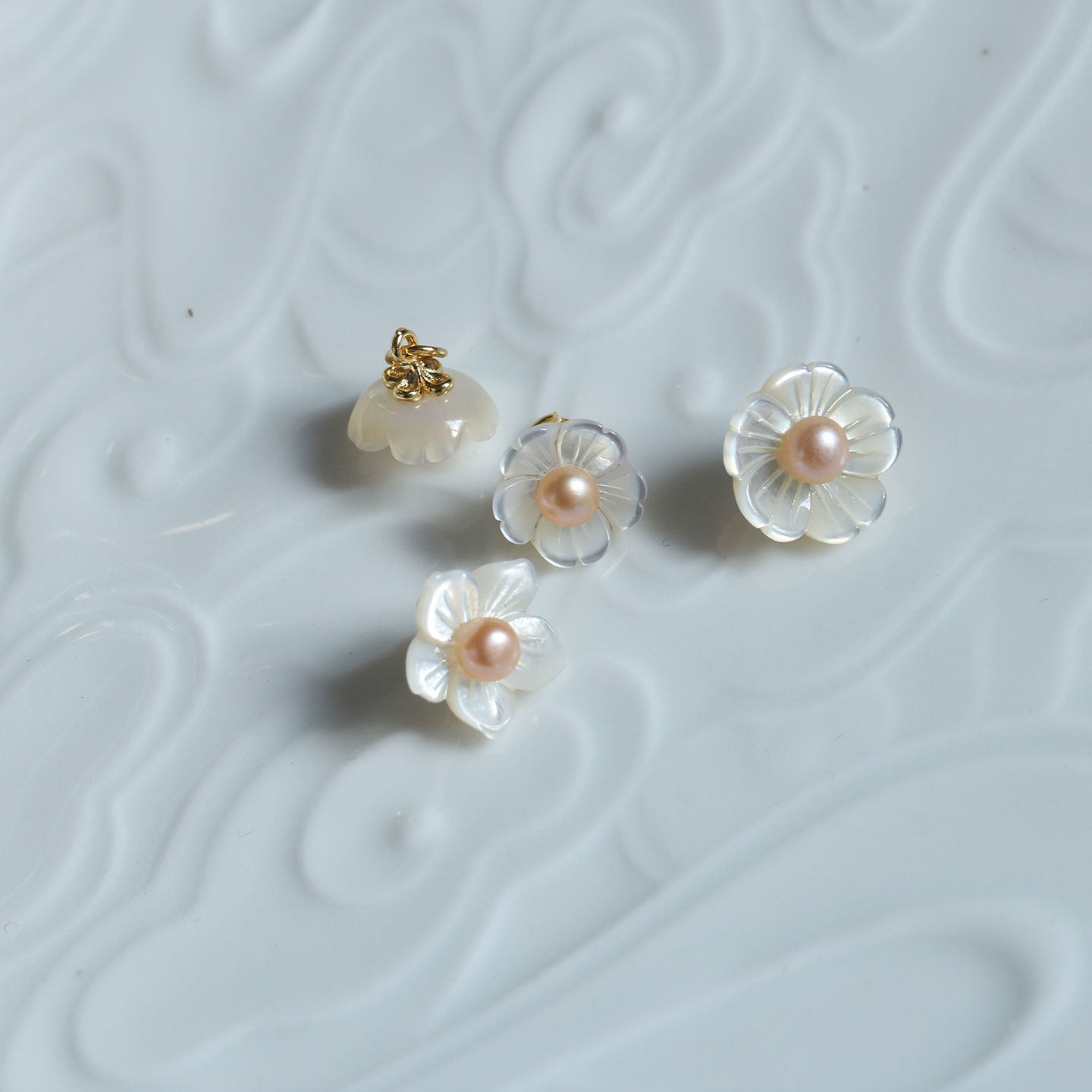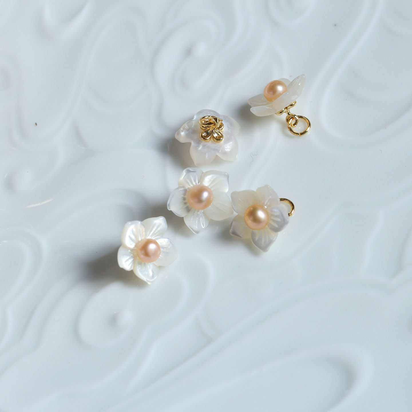 白蝶贝珍珠小花桃花挂坠项链手链挂坠 花影梦发簪发饰头饰DIY配件
