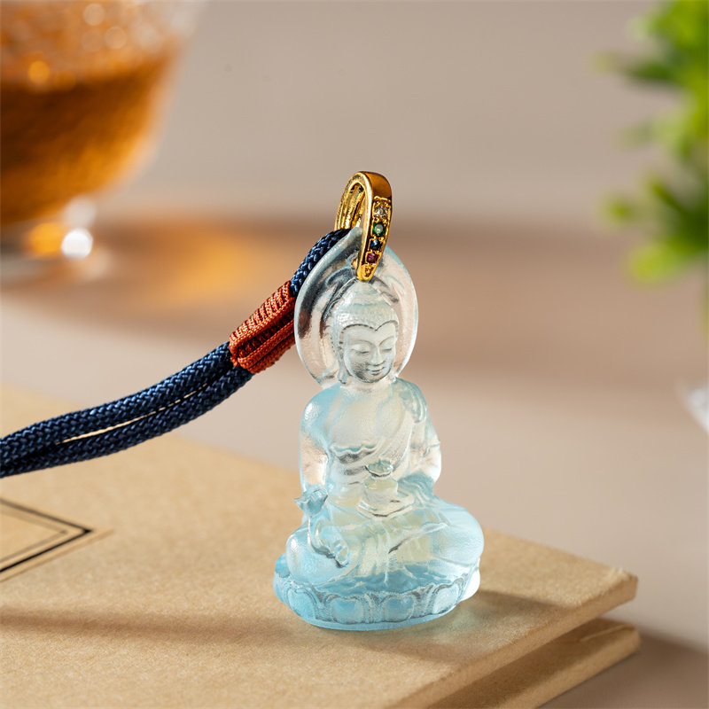 药师佛吊坠有开广蓝色琉璃男女款随身佛像药师琉璃光如来吊坠项链