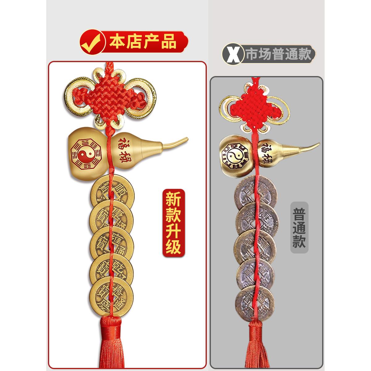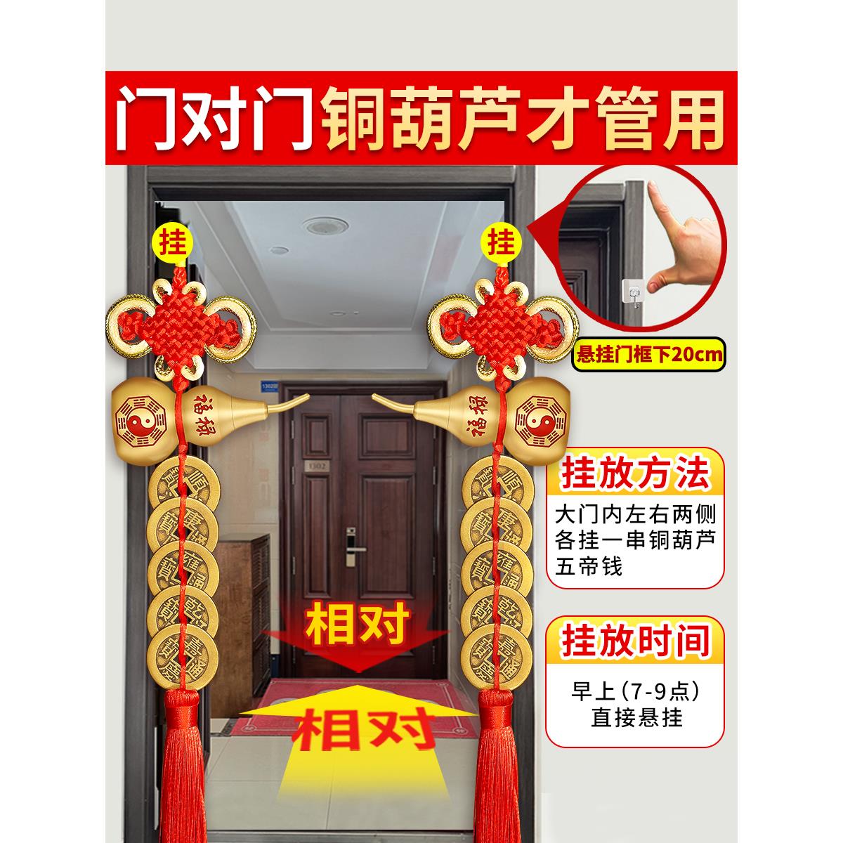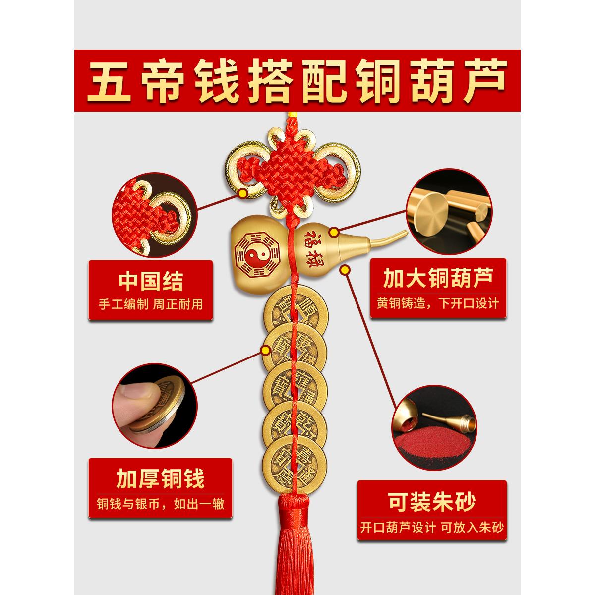 五帝钱门对门纯铜真品葫芦铜钱入户门卧室吉祥中国结古币镇宅挂件