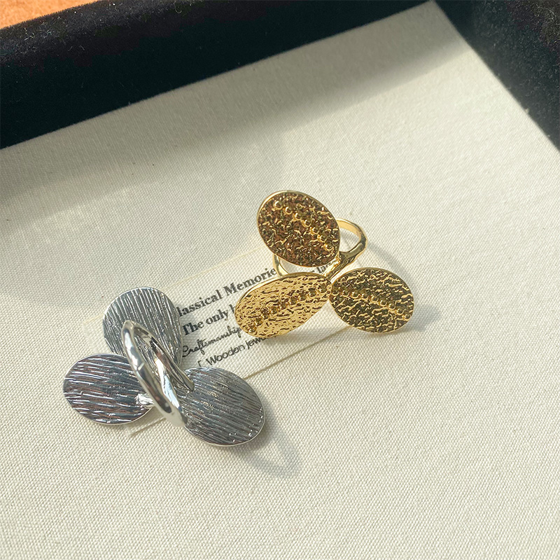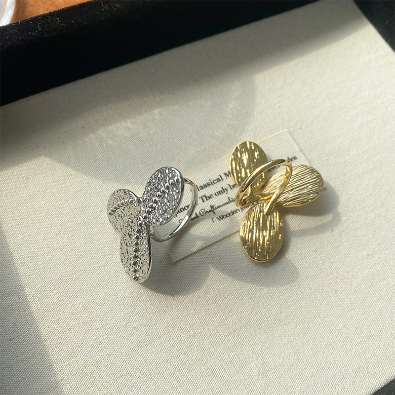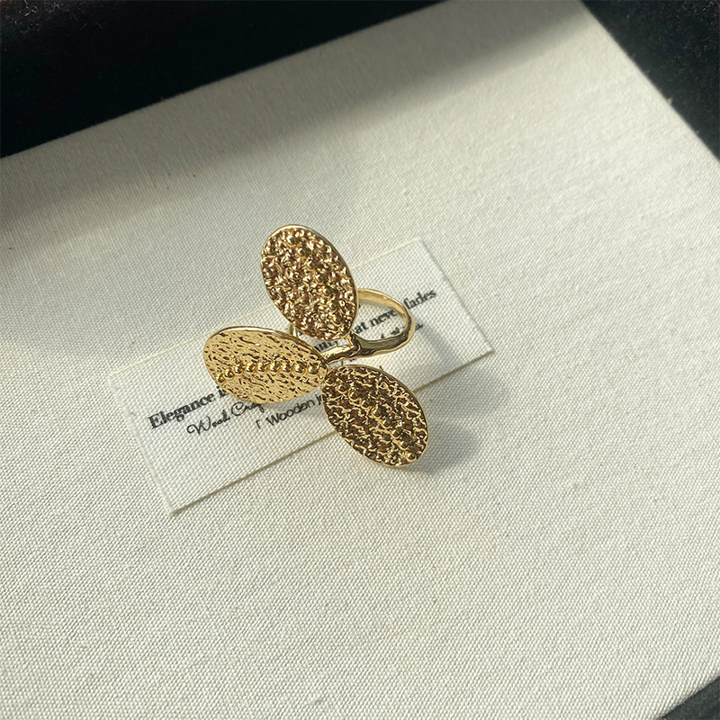 25年新法式凹凸表面树叶子三叶女开口戒指小众冷淡风植物指环女