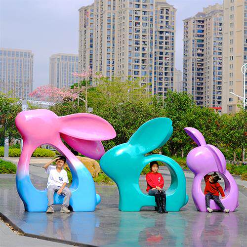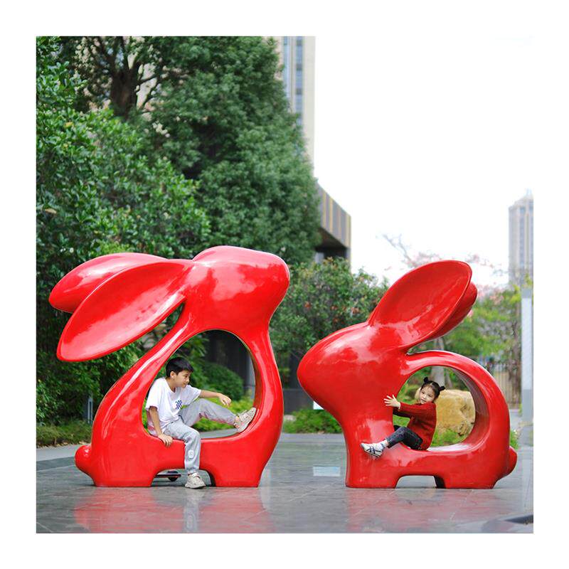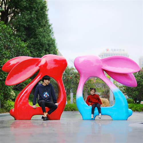 卡通兔子座椅新春大型雕塑户外小区公园步行街房地产打卡玻璃钢摆