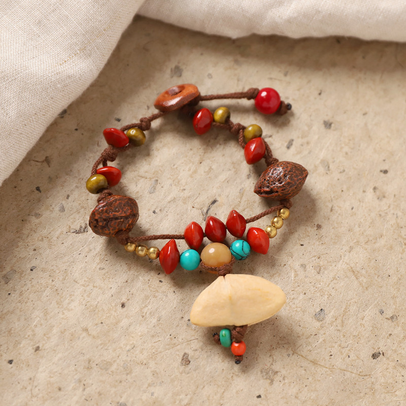 天然植物果壳编织手链手摇铃复古小众风铃音疗手串女森系手绳配饰