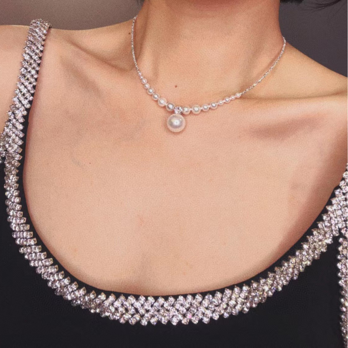 渐变大小项链施家珍珠锁骨链颈链对版实拍