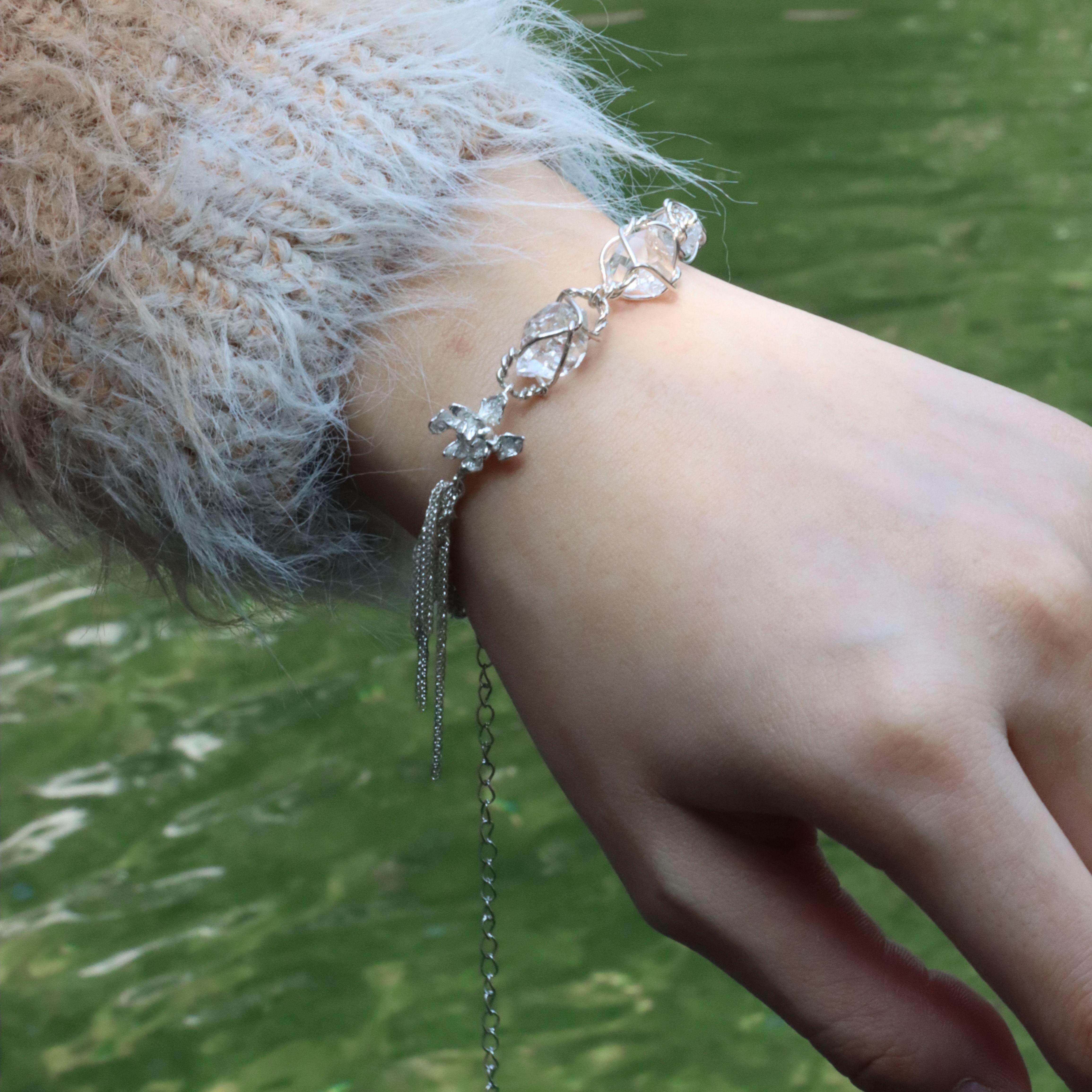 東黑三白/ 清清小莲 s930纯银百搭基础水晶小众编织女手链礼物