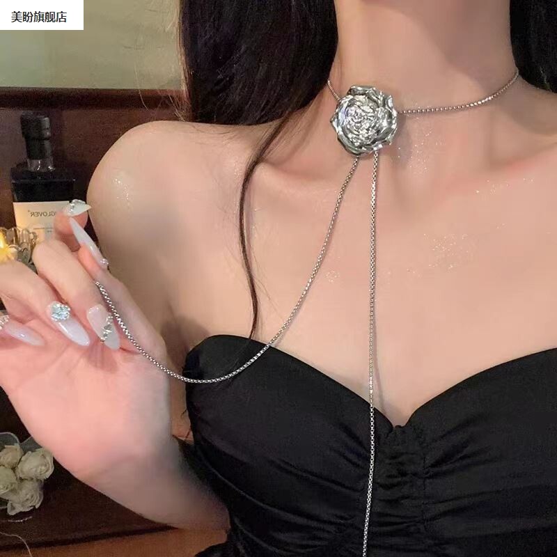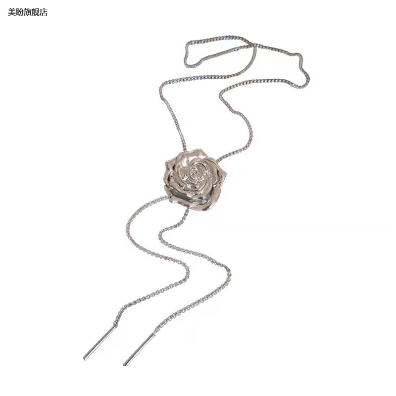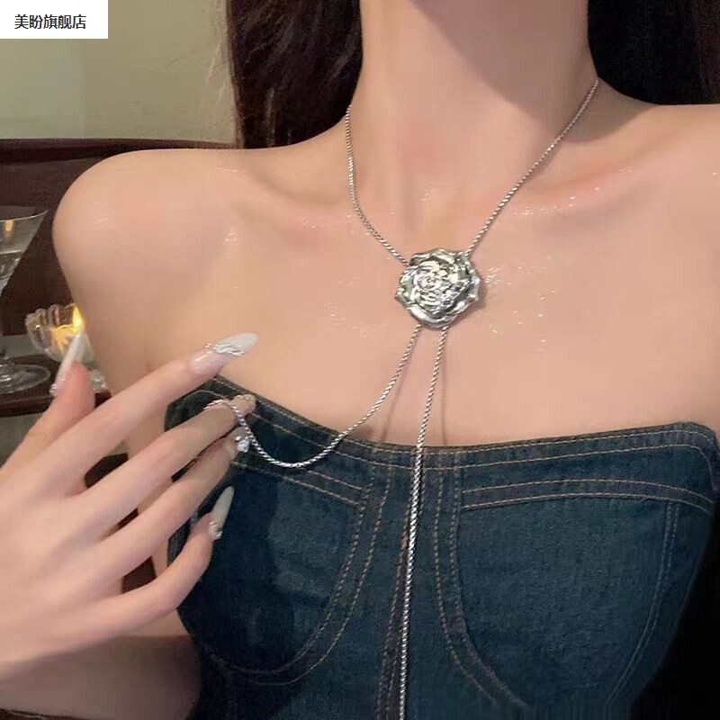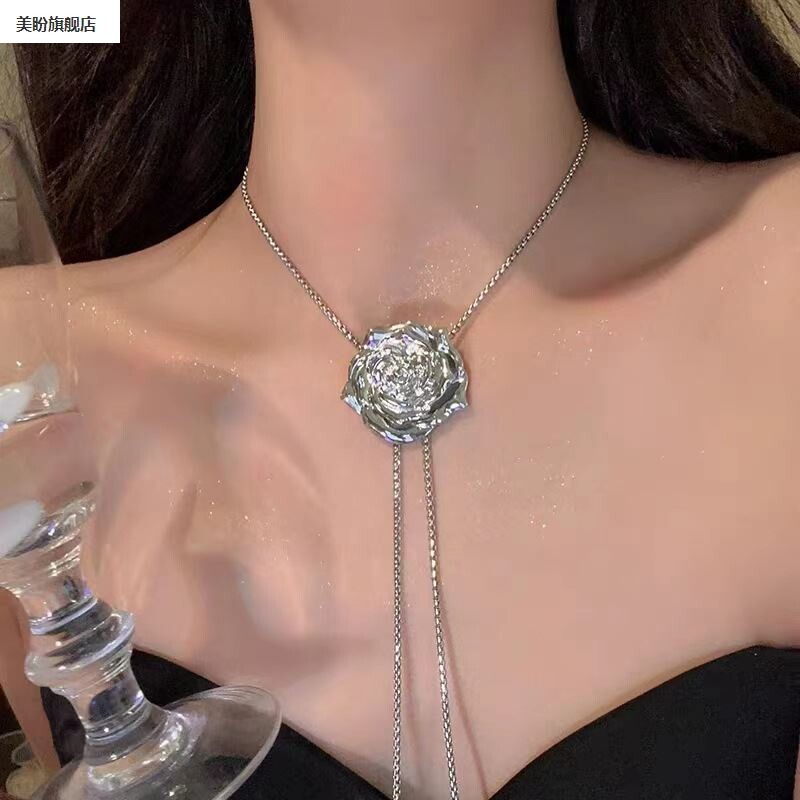钛钢项链高级感玫瑰花花朵抽拉式长款毛衣链秋冬甜酷新款饰品百搭