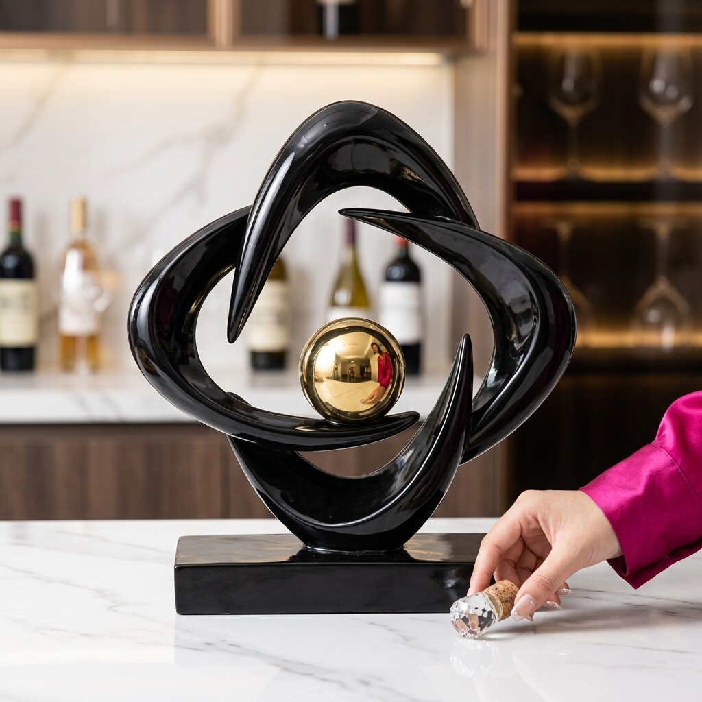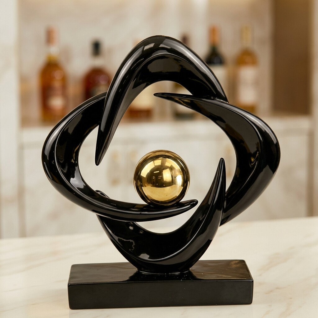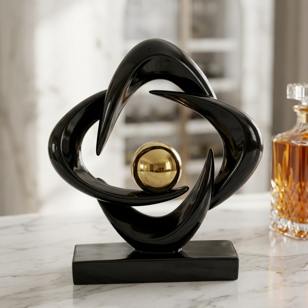 现代简约抽象雕塑摆件客厅书房装饰品黑色金属艺术摆设