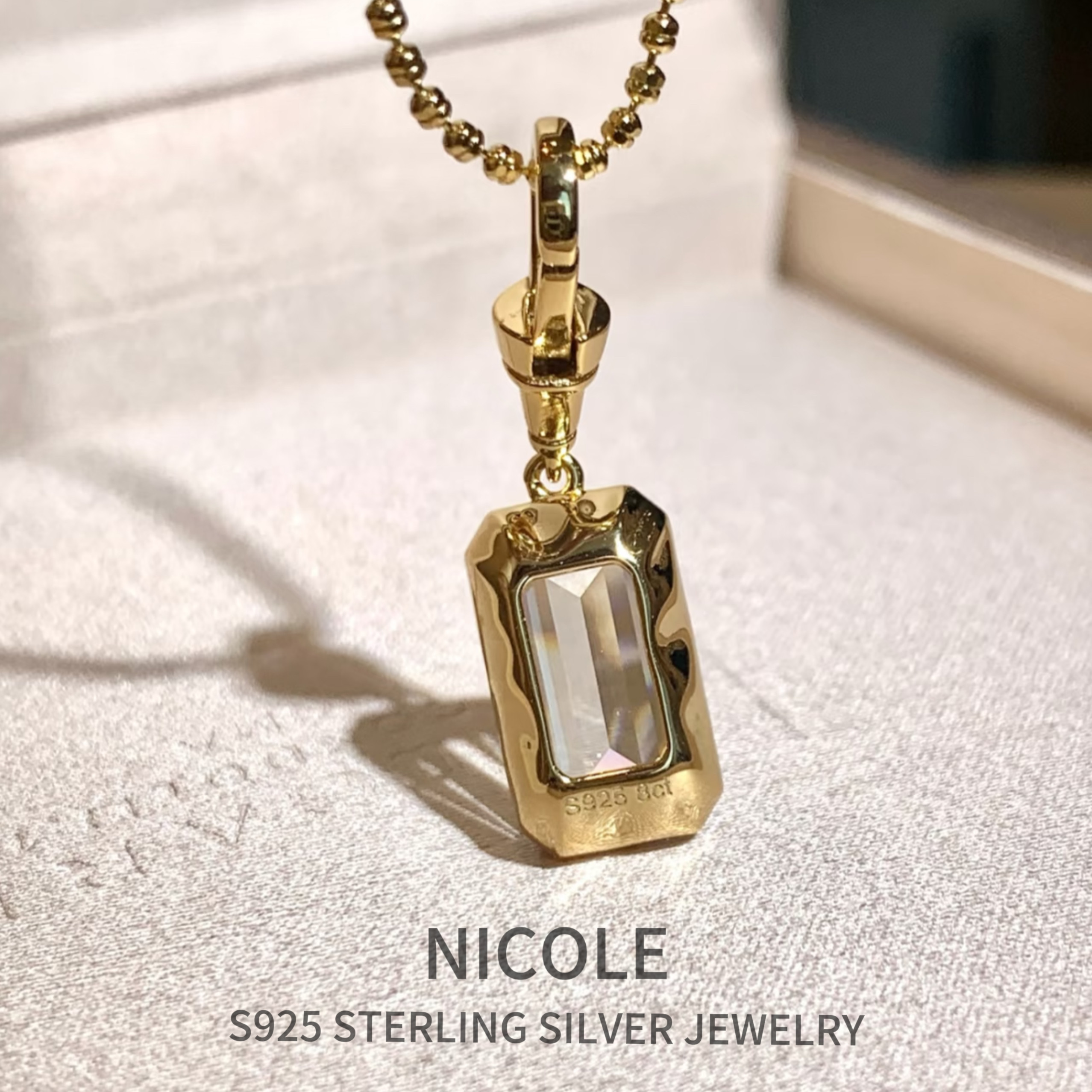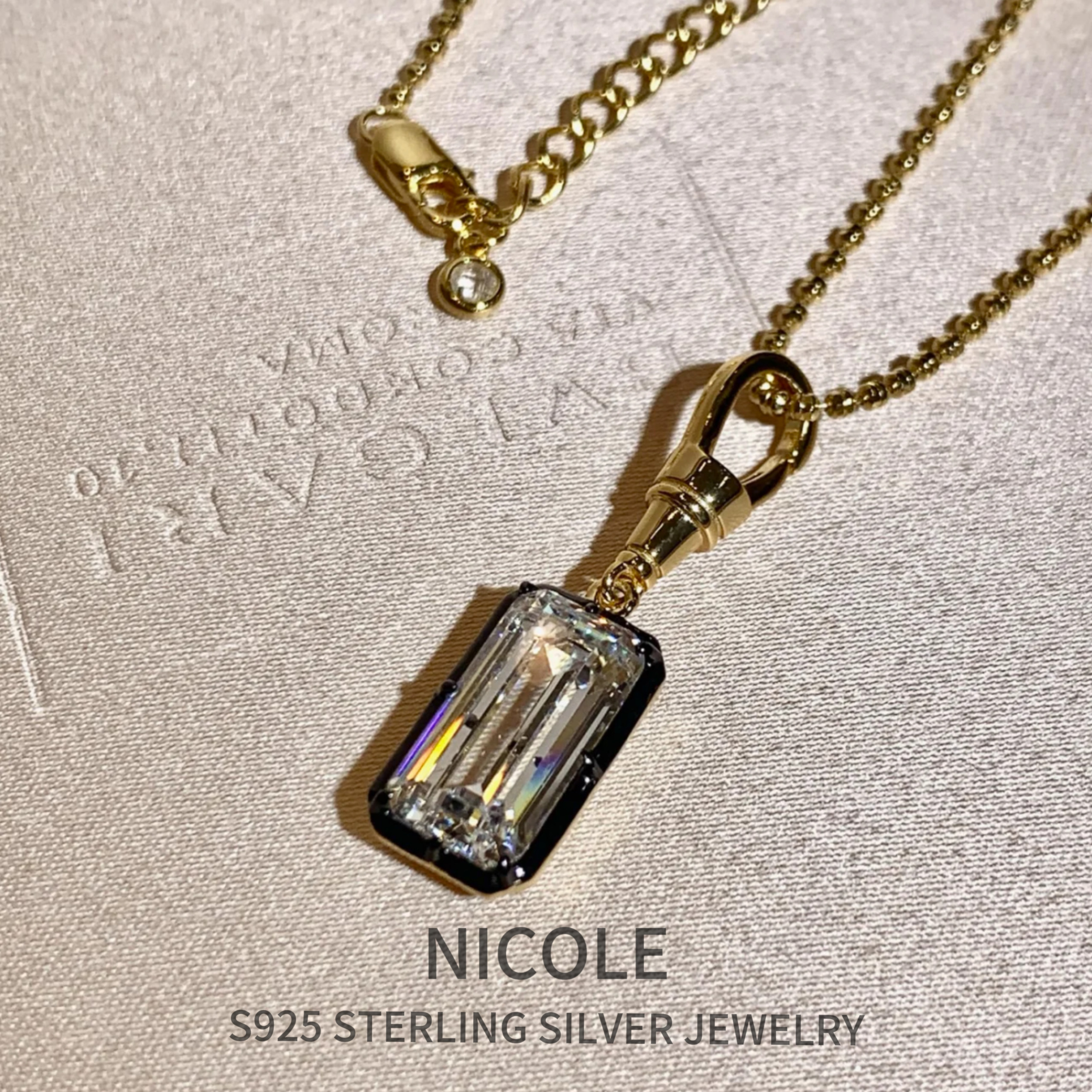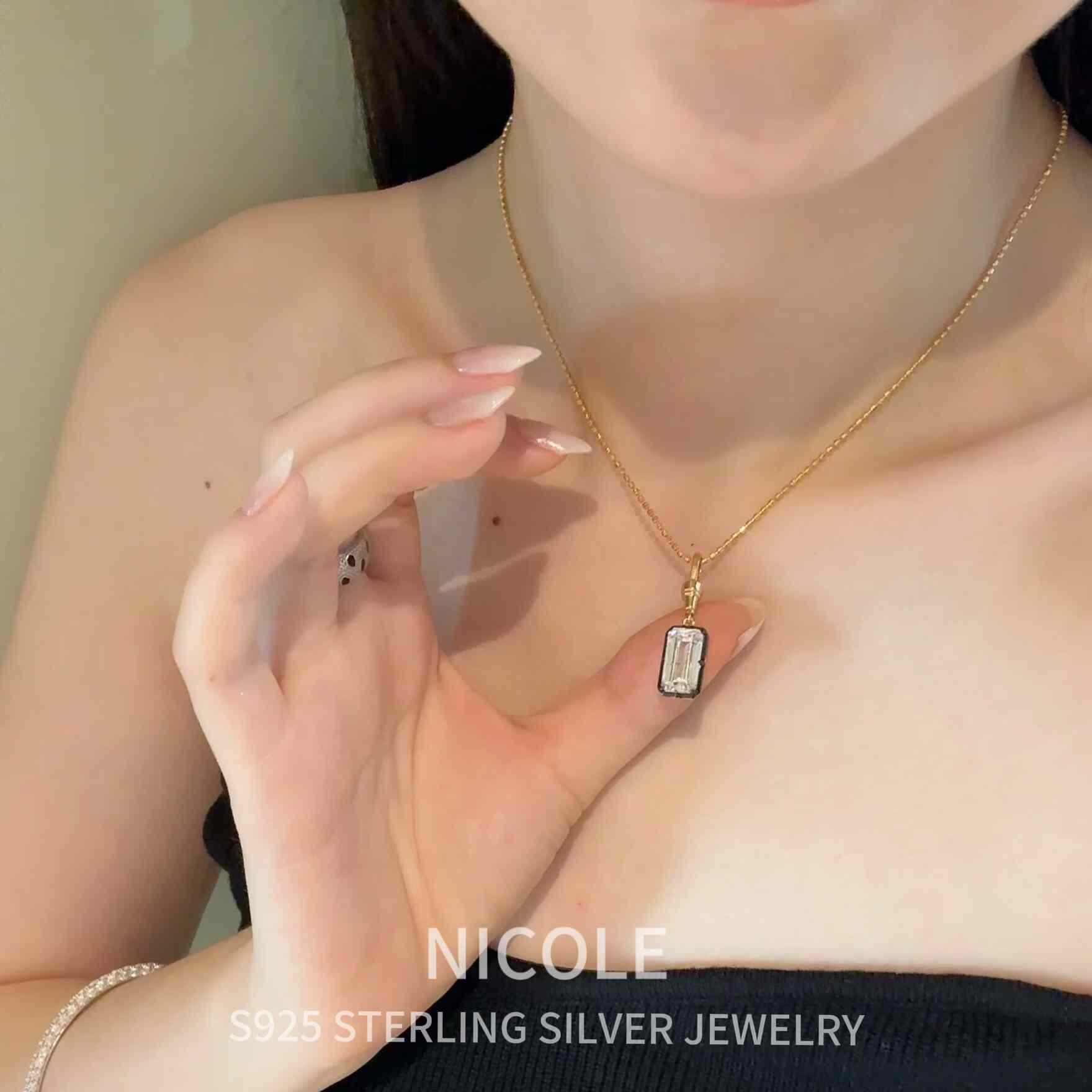 Nicole Jewelry 黑金方糖钻石纯银项链女轻奢小众设计感锁骨链