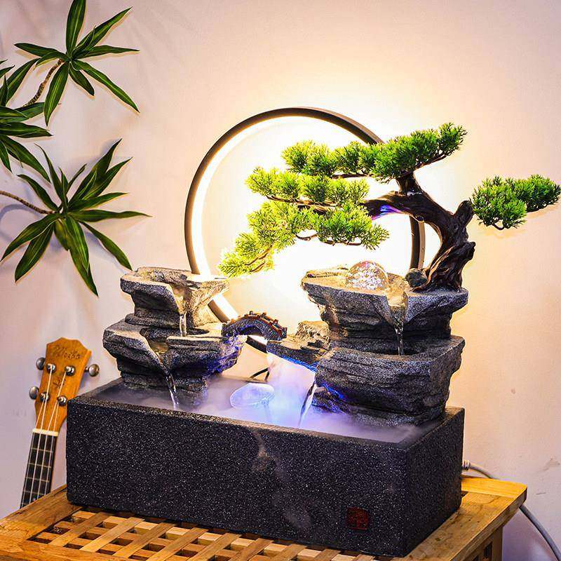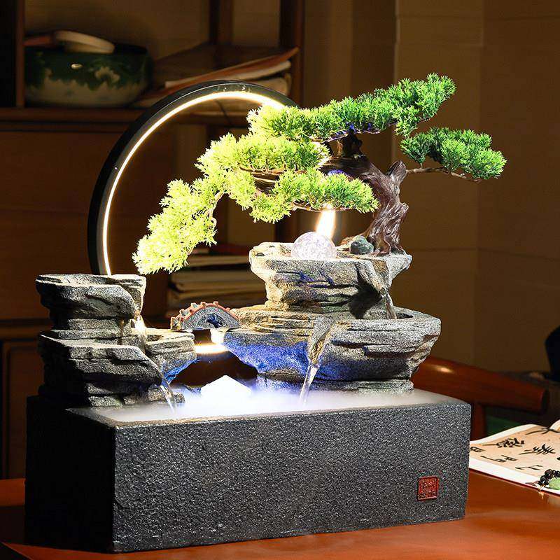 新中国风财富风水轮循环流水喷泉水景客厅摆件桌面软摆鱼缸
