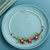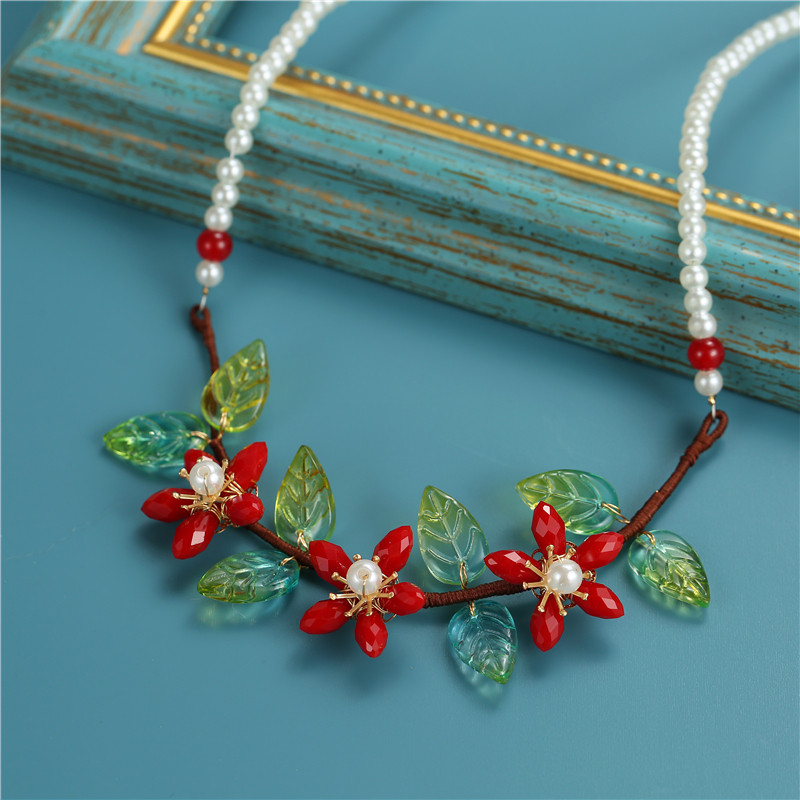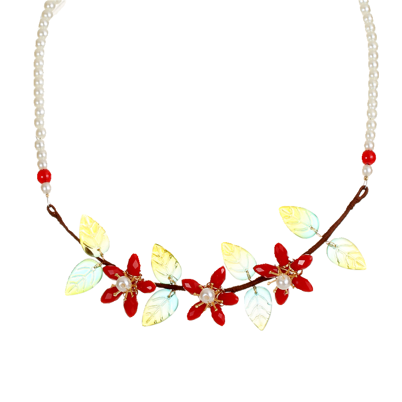 古风项链汉服软璎珞红色花朵吊坠古装坦领颈链宋制围髻新中式配饰
