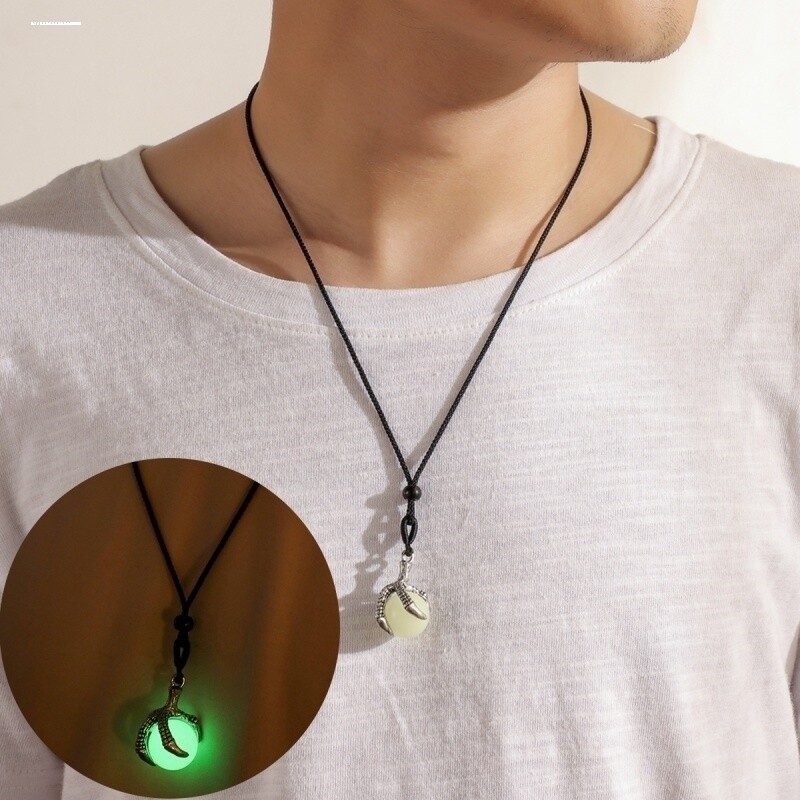 夜光鹰爪龙爪荧光男士项链发光石吊坠新款时尚潮男吊坠
