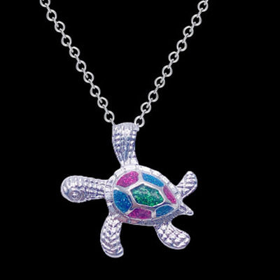 欧美新款乌龟仿澳宝吊坠项链可爱精致蓝色仿欧泊吊坠 跨境热卖