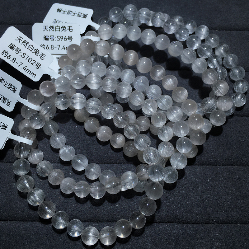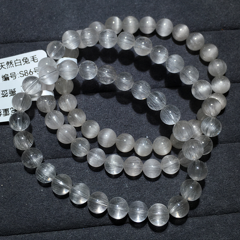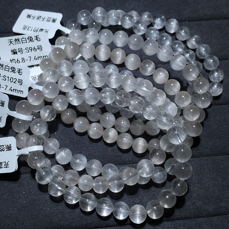 天然透体拉丝白兔毛单圈手链顺发兔毛水晶手串饰品一物一图礼物女