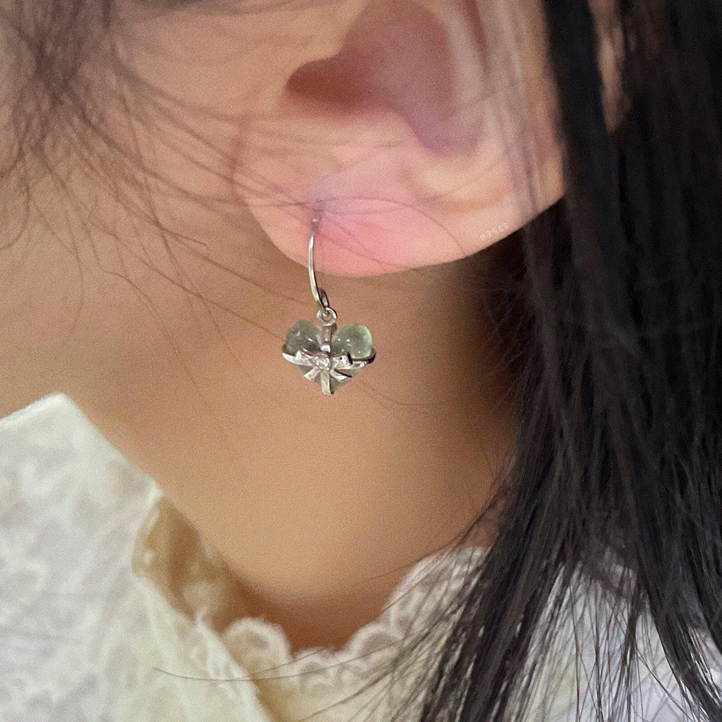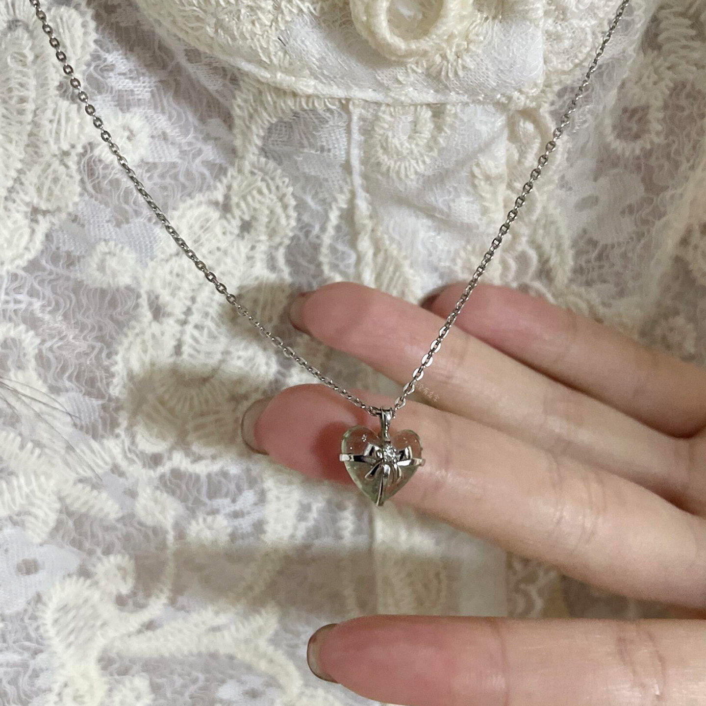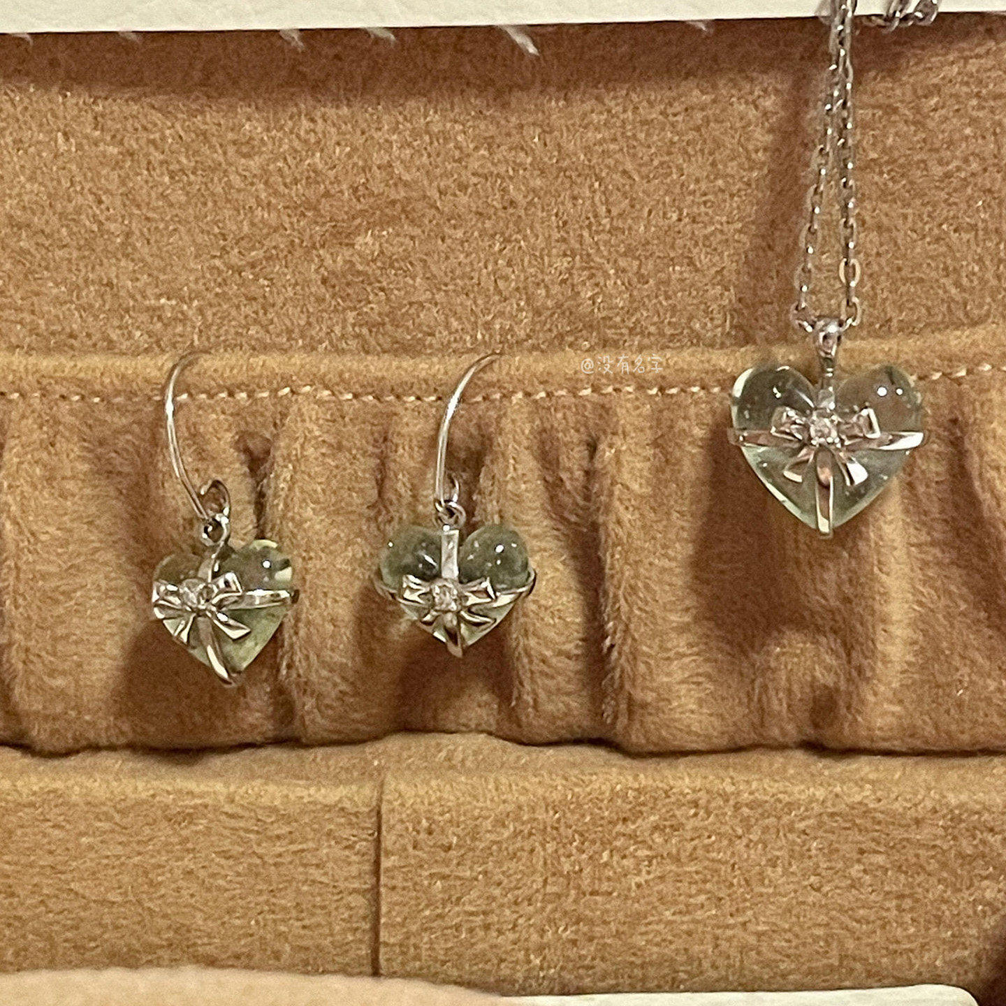 法式复古绿色爱心蝴蝶结项链女2026新款高级感轻奢小众设计锁骨链