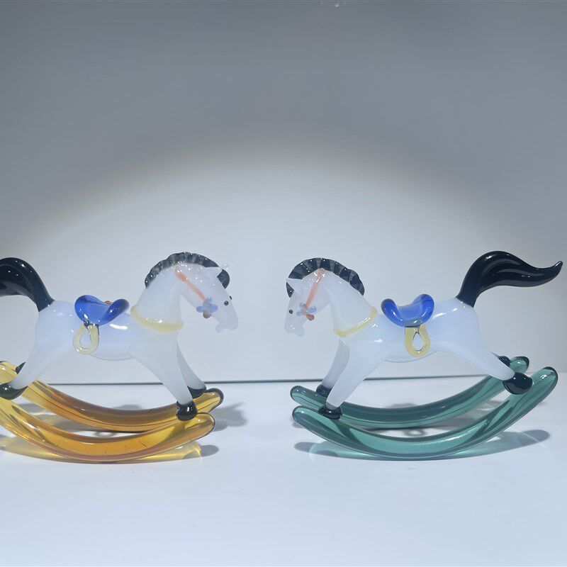 大师琉璃工艺品摇摇马可爱创意治愈笑宠物摆件模型手办生日礼物