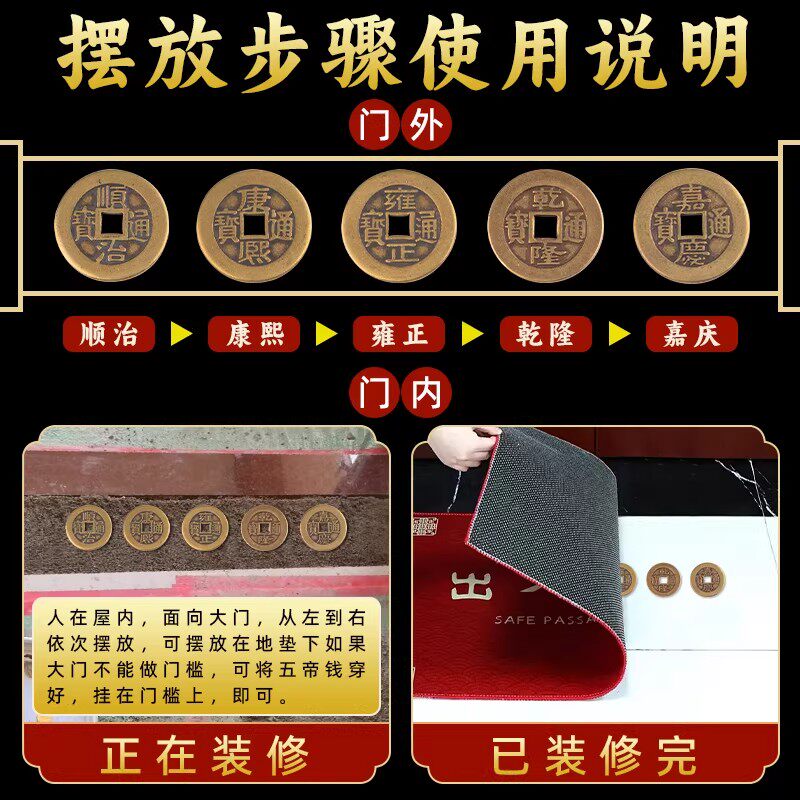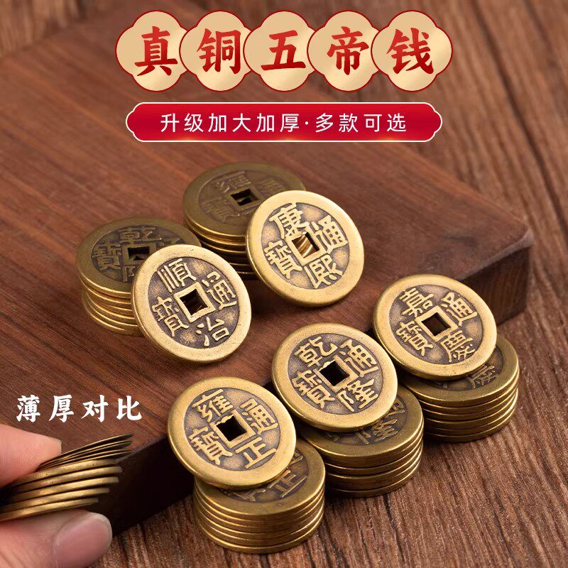 五帝钱压门槛入户门出入平安过门石下压的专用装修黄铜钱古币真品