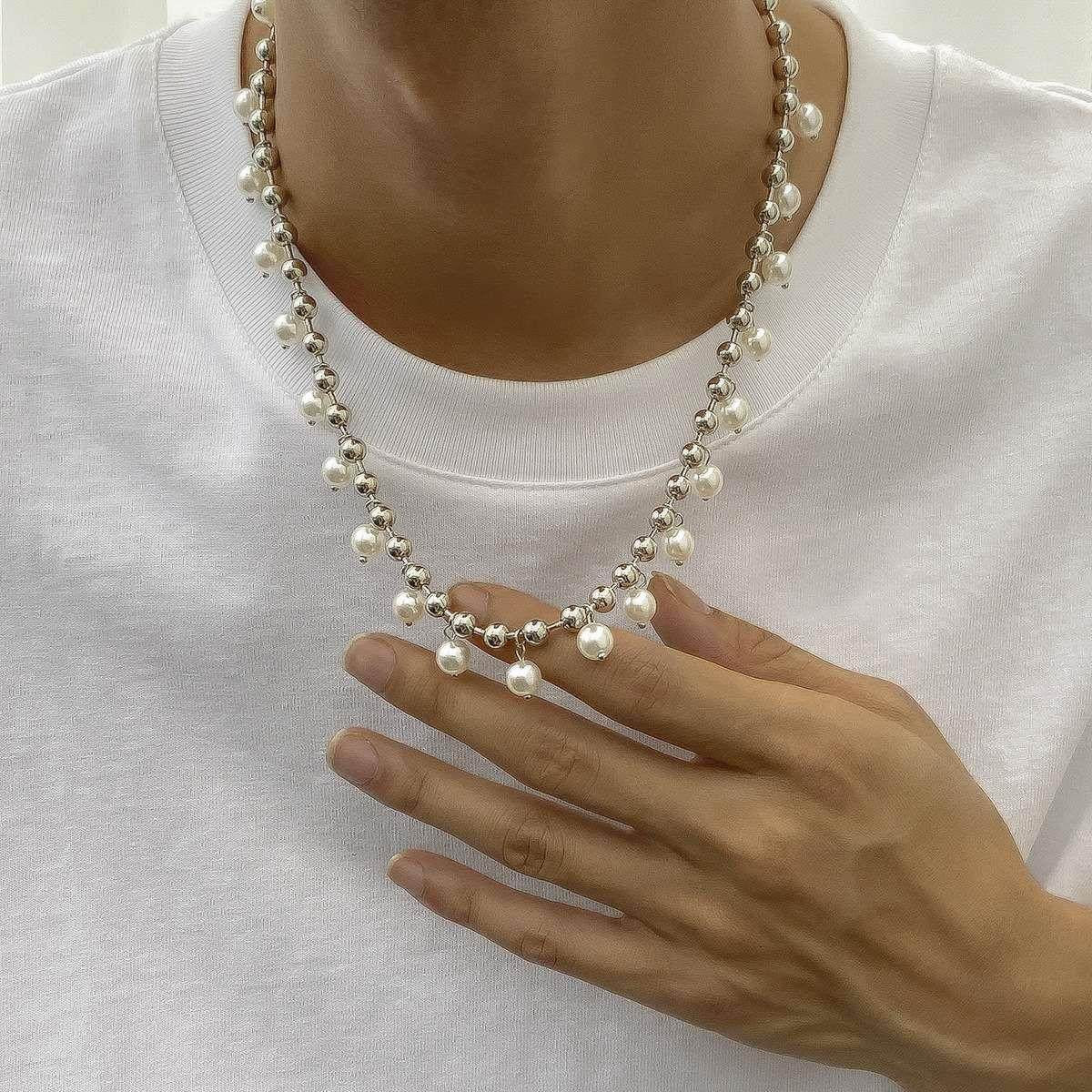 Pearl necklace simple temperament single-layer bead chain h1