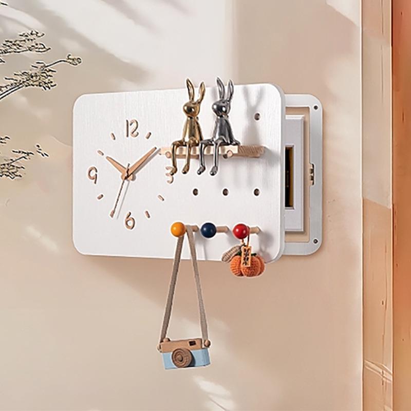 中古风洞洞板电表箱装饰画带钟表遮挡时钟配电箱盖板画挂钟遮丑
