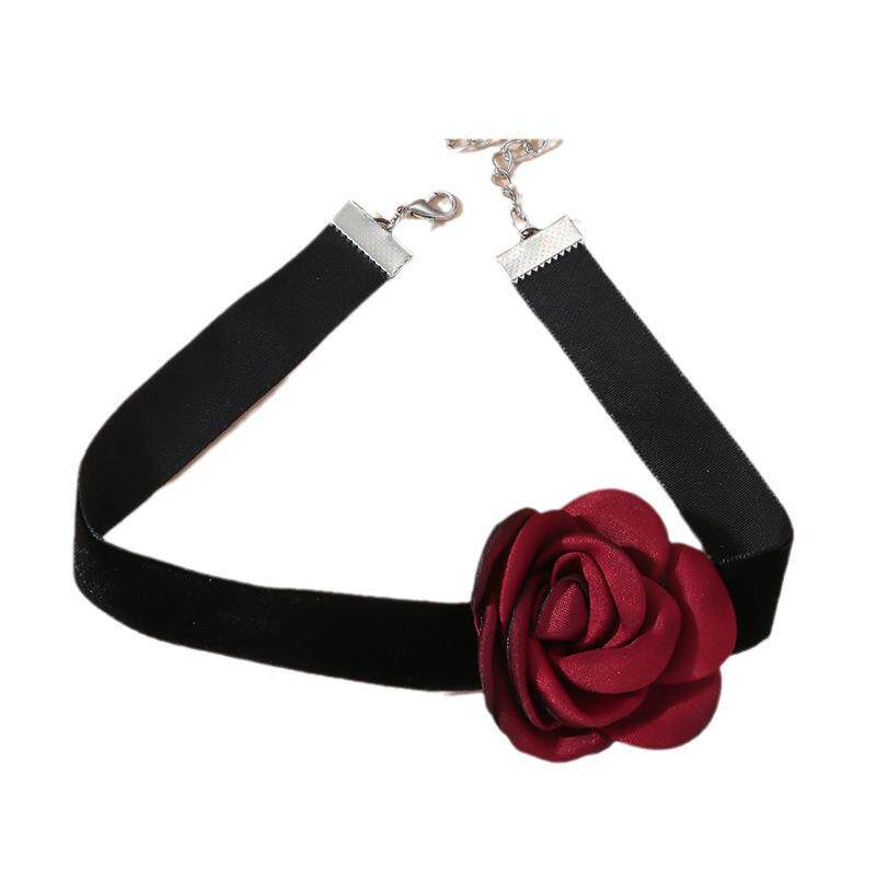 玫瑰花颈链choker项圈花朵法式脖子自由打结绑带颈花女项链黑色06