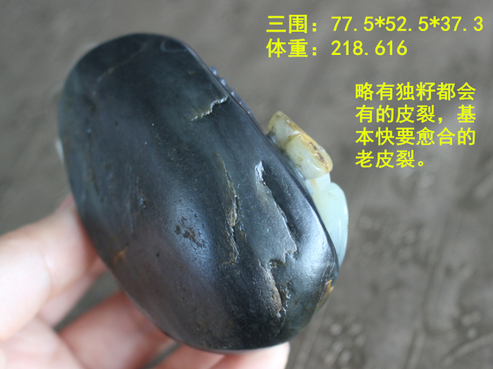 N稀有三色玉 和田玉黑白分明黄沁皮墨玉籽料把件