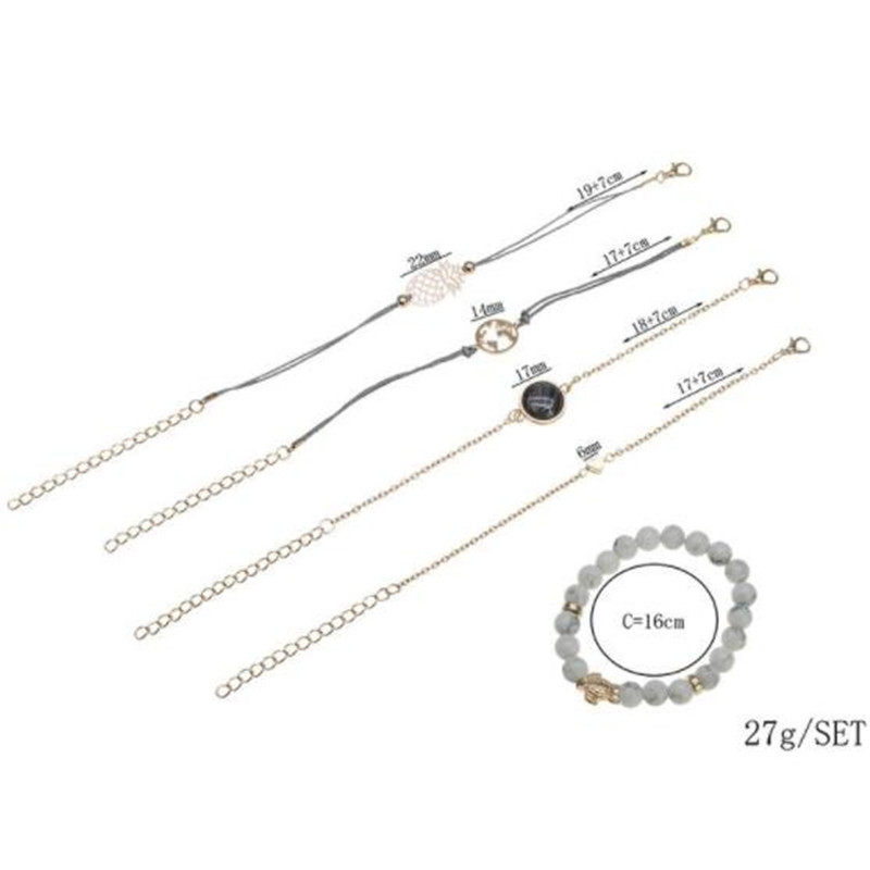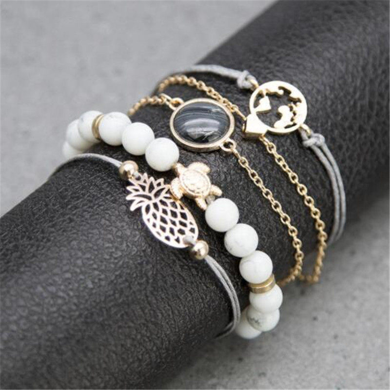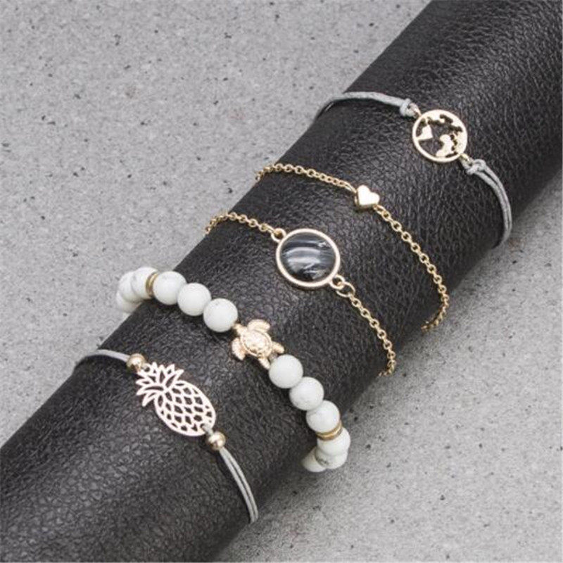 欧美风编织手链菠萝爱心黑珠地图海龟青色珠串镶钻松石手链五件套