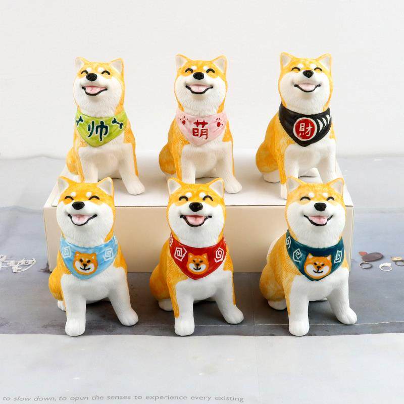 招财柴犬陶瓷摆饰创意家居装饰品可爱小狗办公室桌面摆设公仔礼物