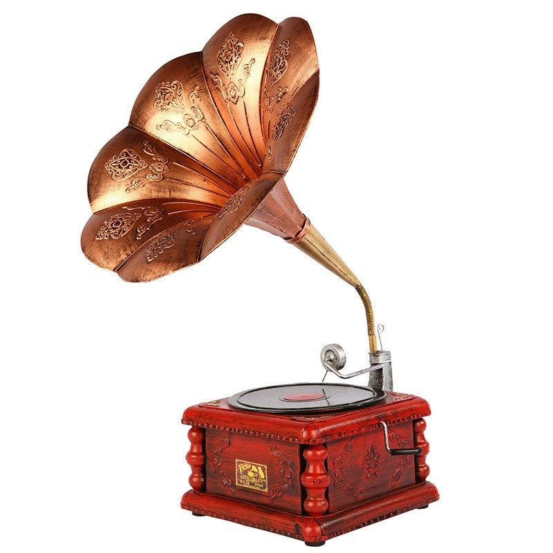 复古留声机欧式摆m件留声机装饰铁艺唱片机模型工艺品家居摆件