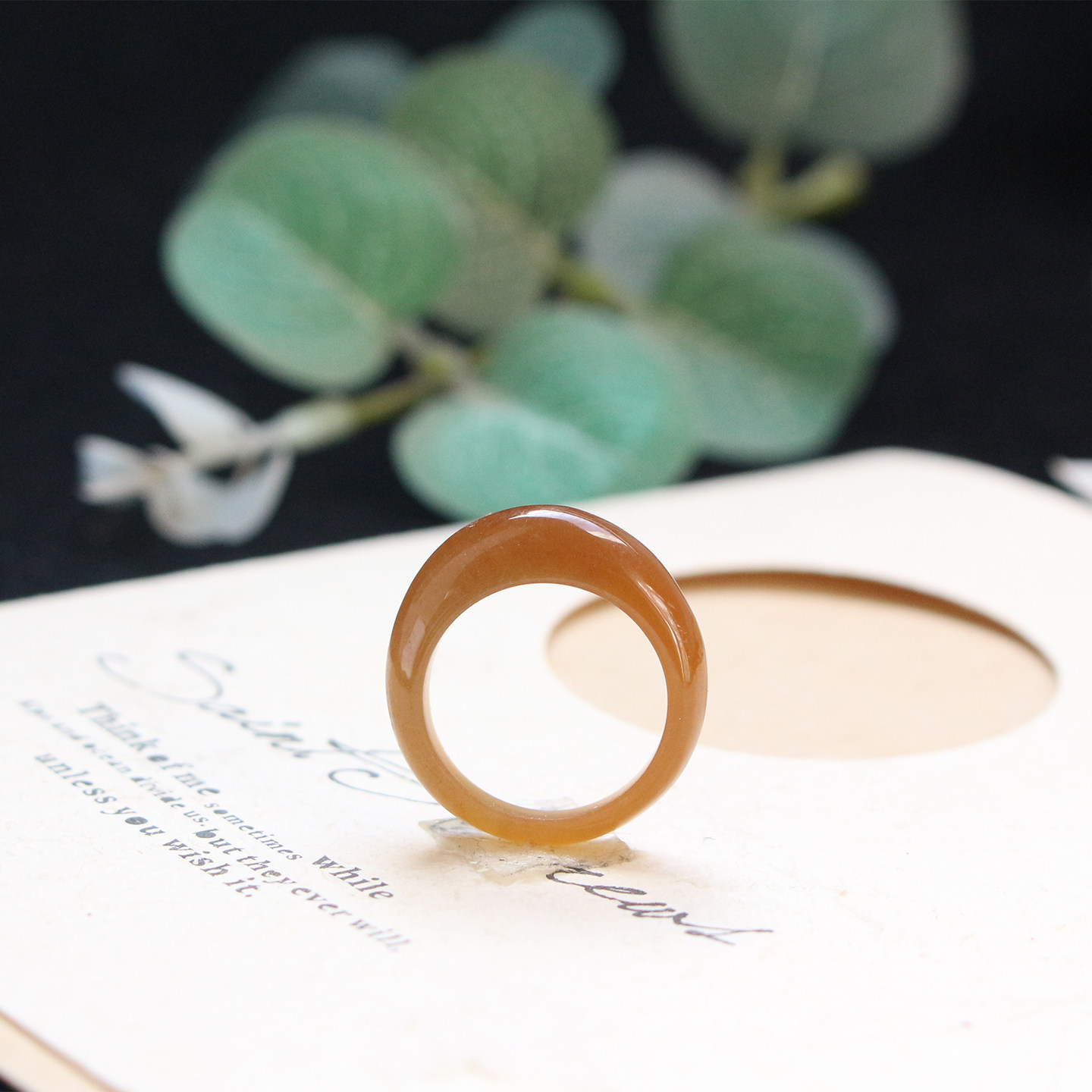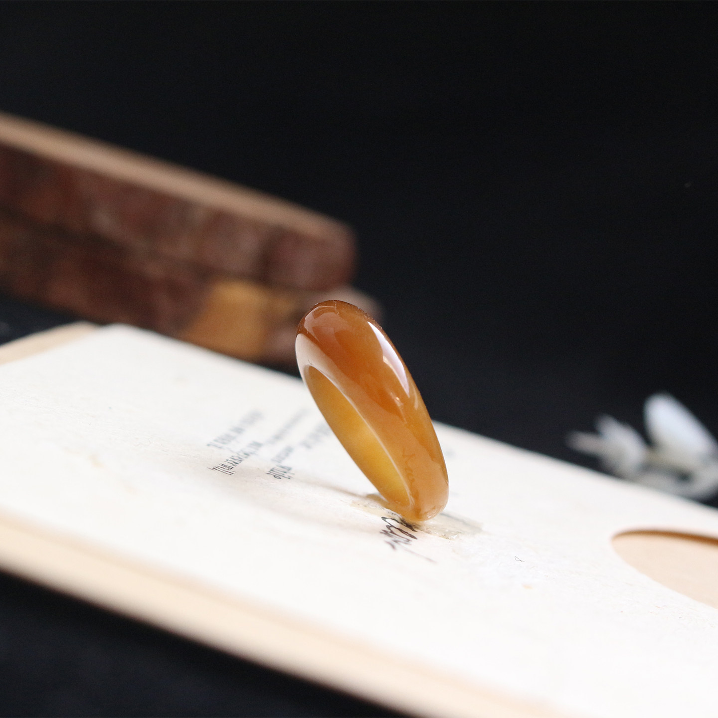 和田玉糖玉馒头戒指黄金糖水滴指环女士简约时尚款16mm玉戒可定制