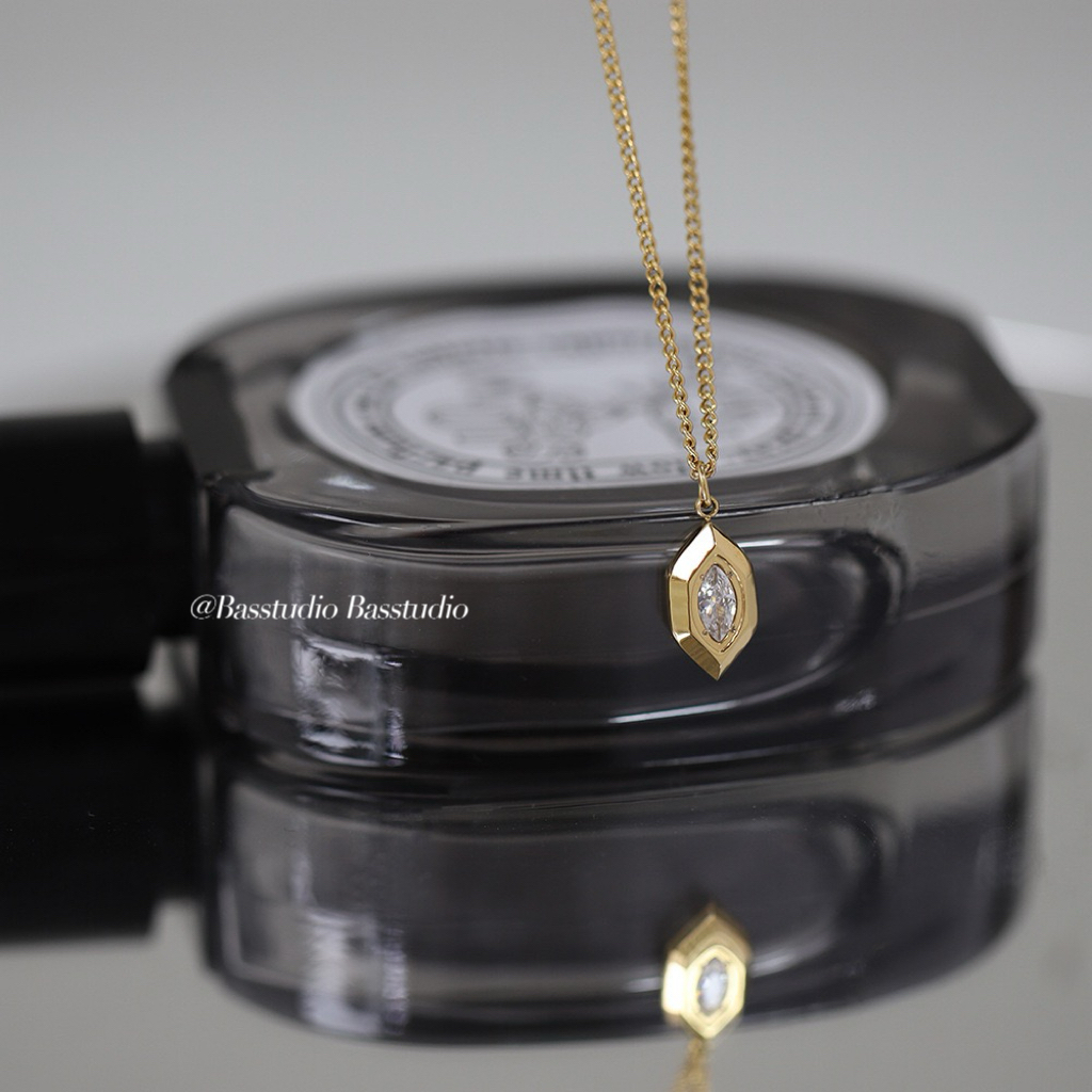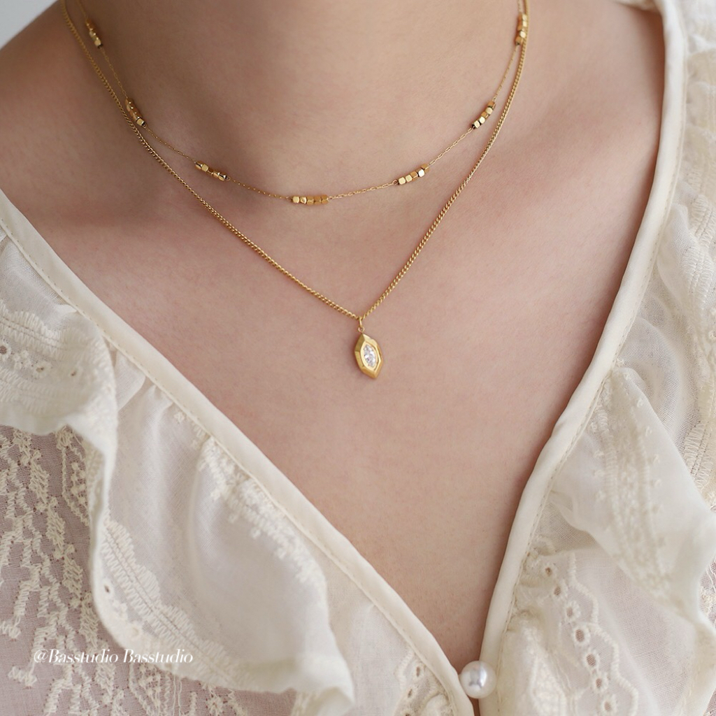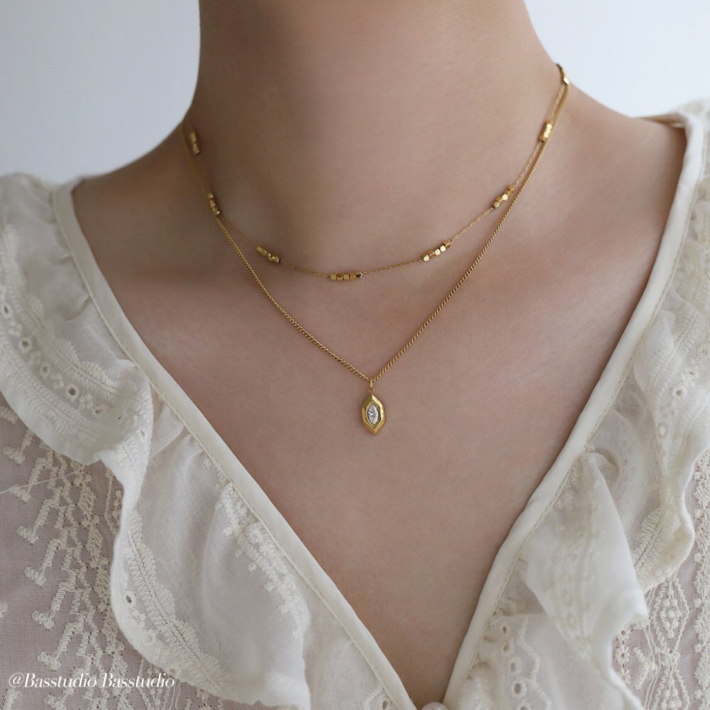Basstudio原创小众INS风橄榄形白钻几何项链钛钢镀18K金不掉色