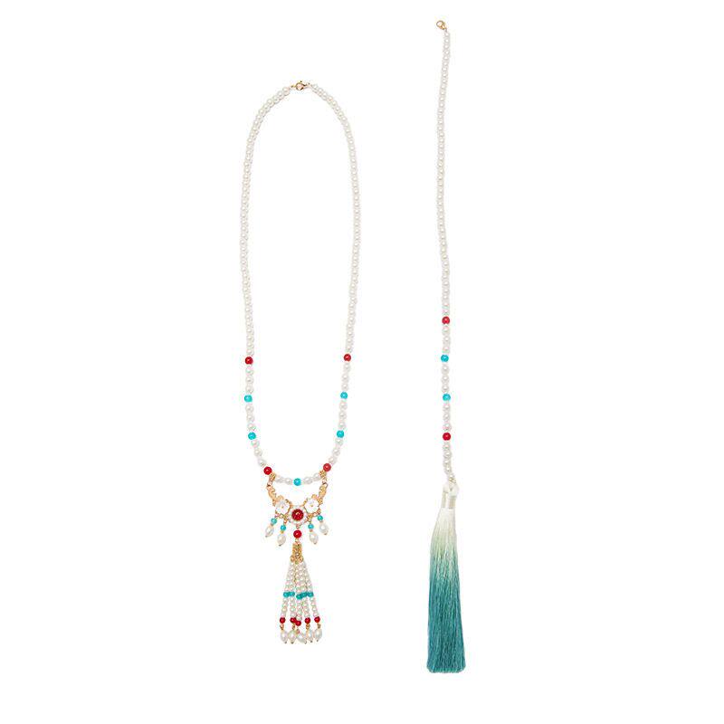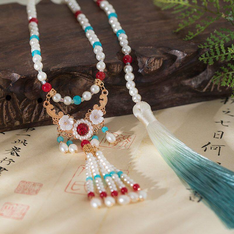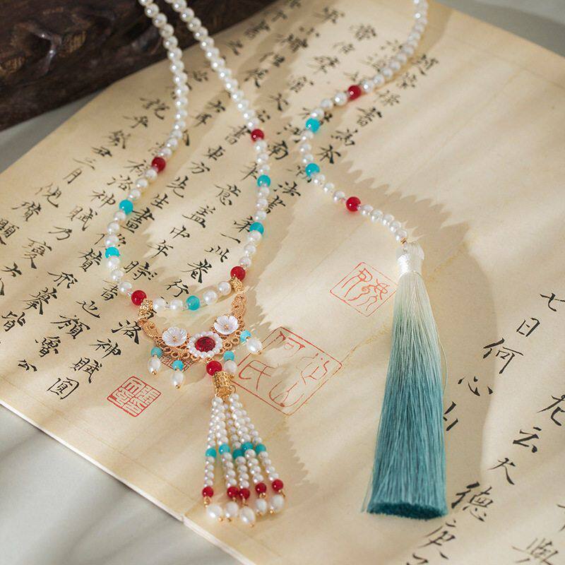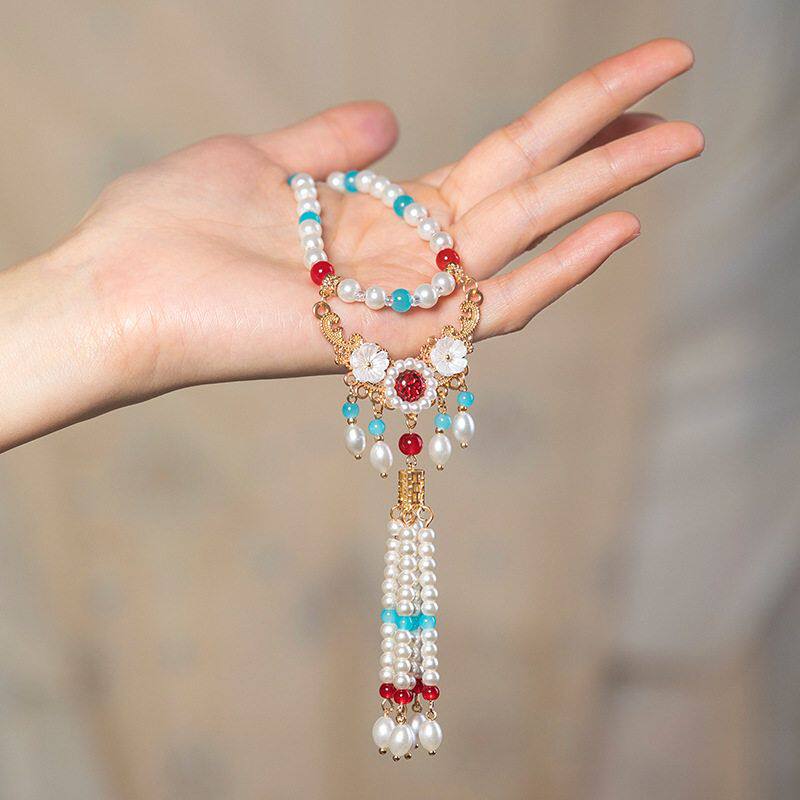 厚土珠山跨境长相守长款晚明风璎珞汉服珍珠项链古风镀金流苏项圈