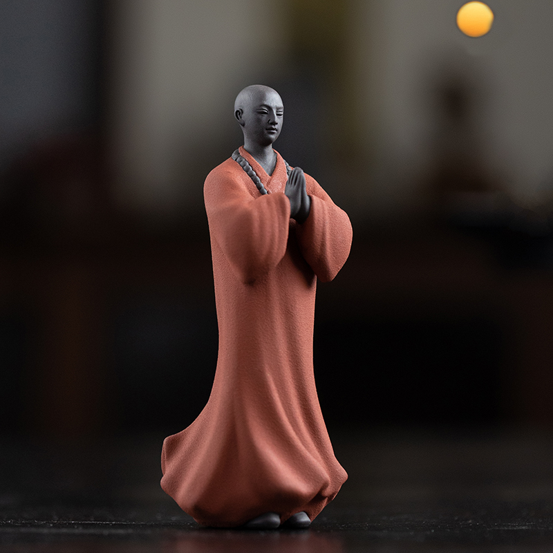 速发陶瓷禅意小和尚摆件创意紫砂人物家居客厅书房茶桌桌面装