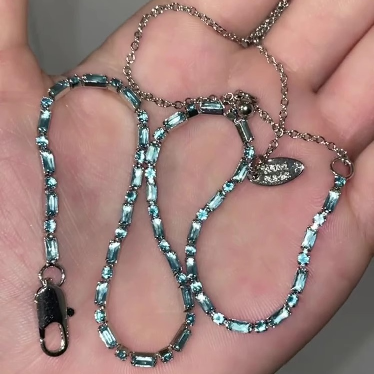 蓝色仿锆石项链女款高级感轻奢小众甜酷辣妹风锁骨链2025新款爆款