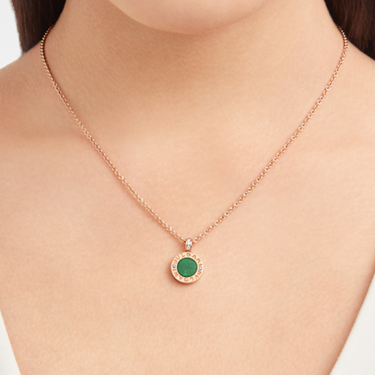 【自营】中古99新Bvlgari宝格丽Bvlgari系列玫瑰金绿翡翠满钻项链