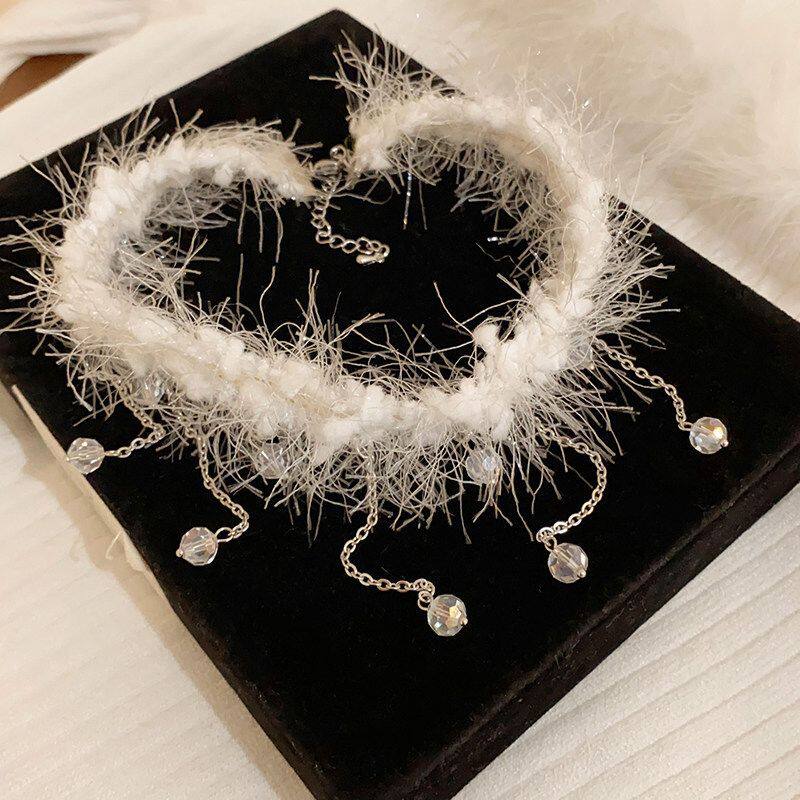 毛绒颈链白色毛毛choker项圈女颈带新年项链2026新款爆款脖子配饰