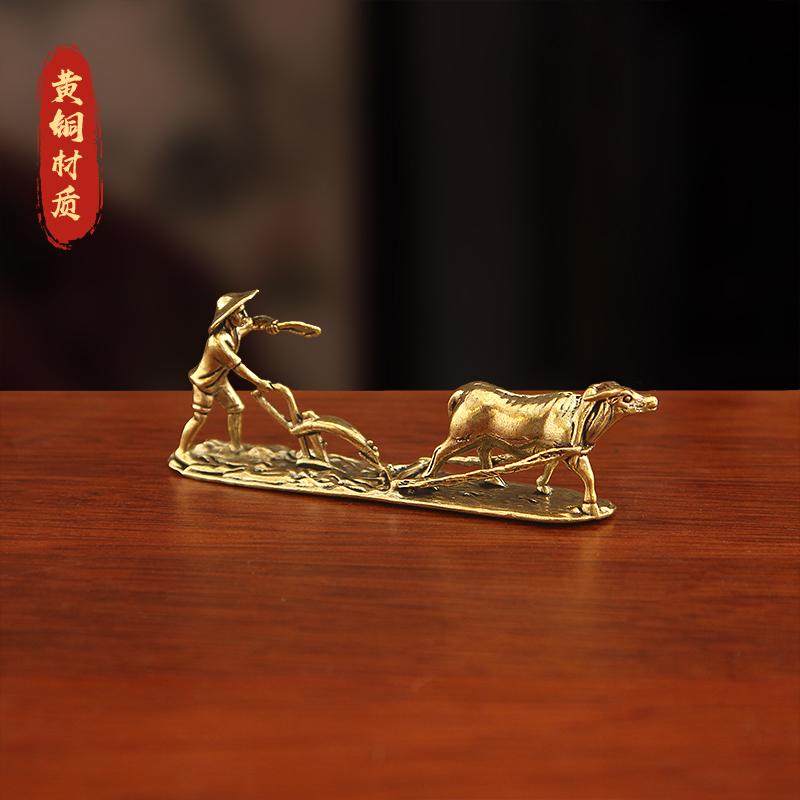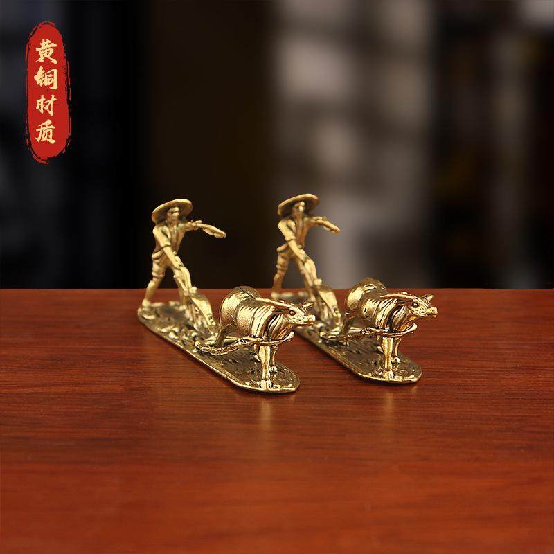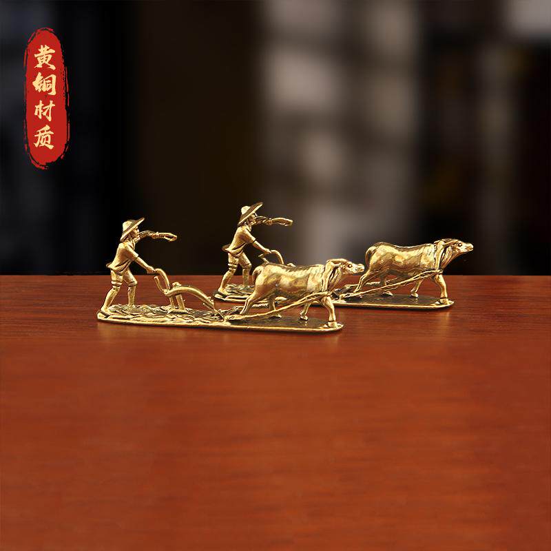 黄铜农夫耕耘摆件老人与牛茶宠办公室铜创意微景观鱼缸装饰铜礼品