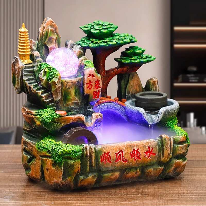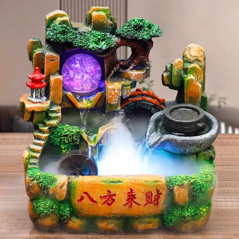 水车假山流水喷泉风水轮循环水生财客厅鱼缸水景造景石磨招财摆件