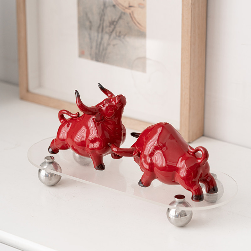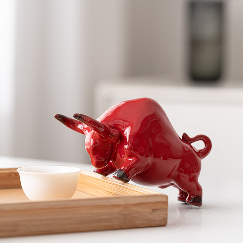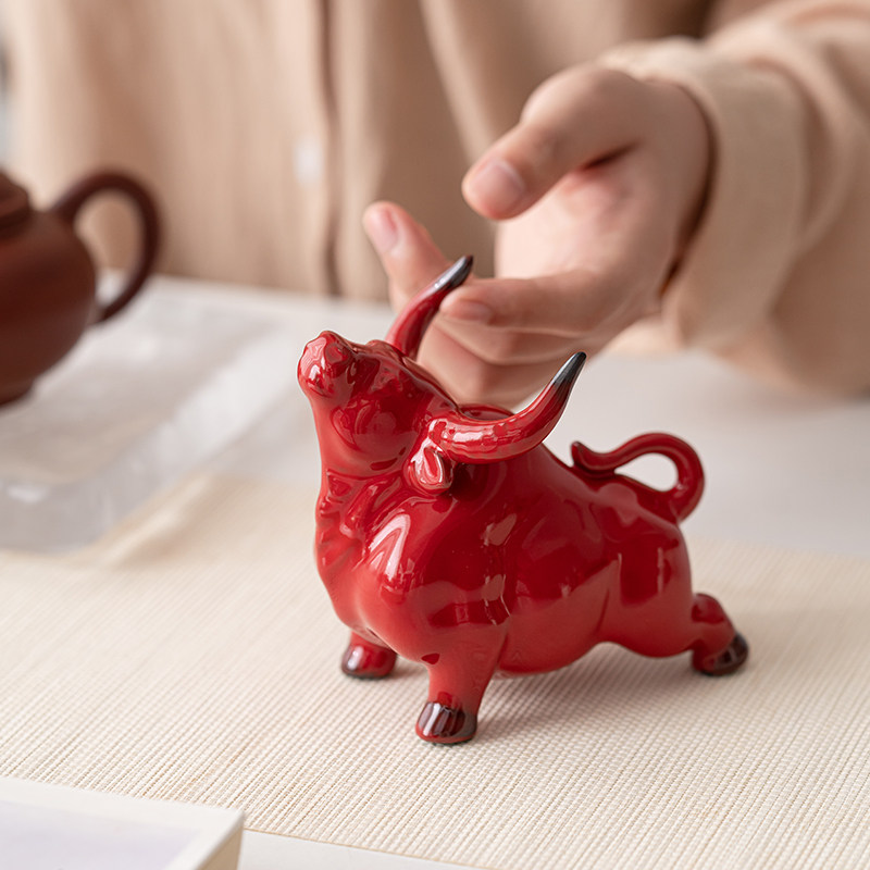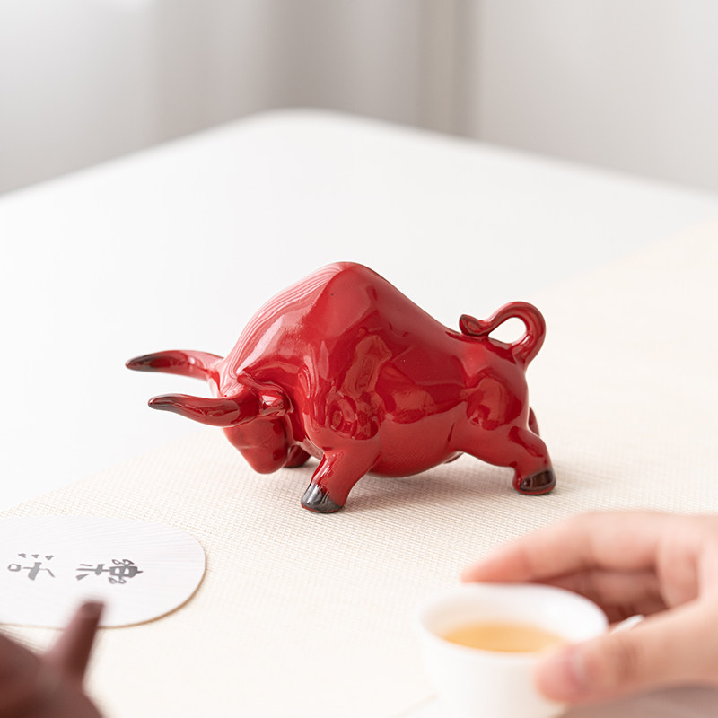 创意陶瓷红色牛摆件家居客厅招财装饰品吉祥物生肖牛年礼品摆设