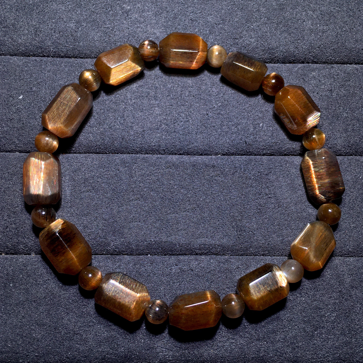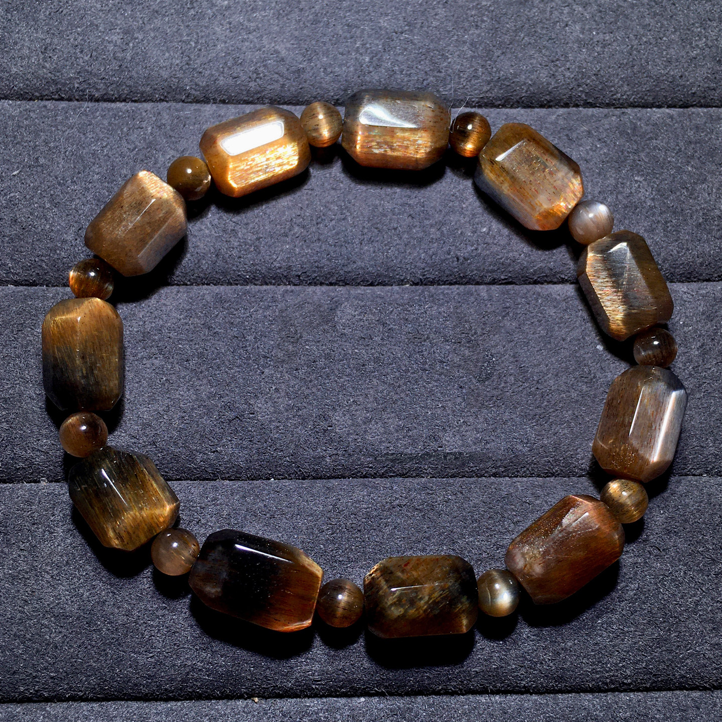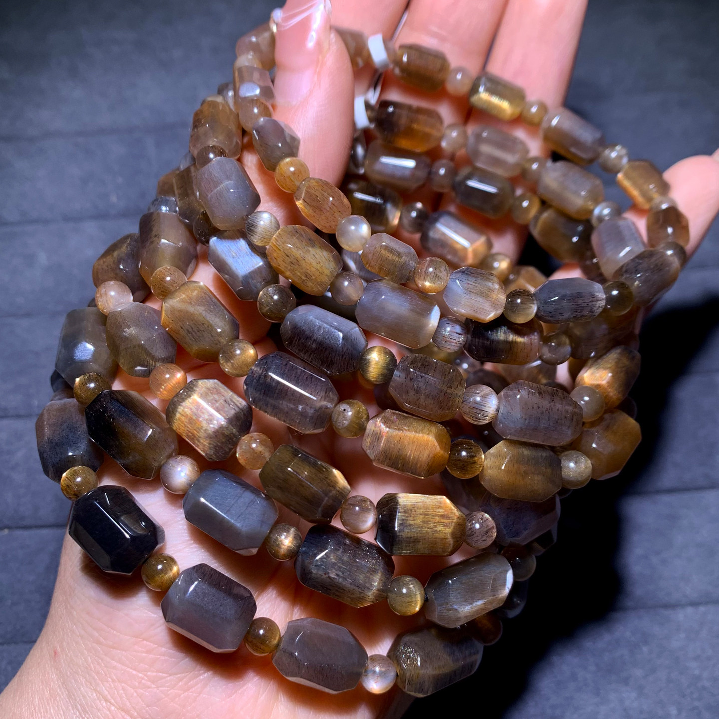 天然黑金骨干长石随形手链金黄色日光石手串百搭饰品水晶情侣款女