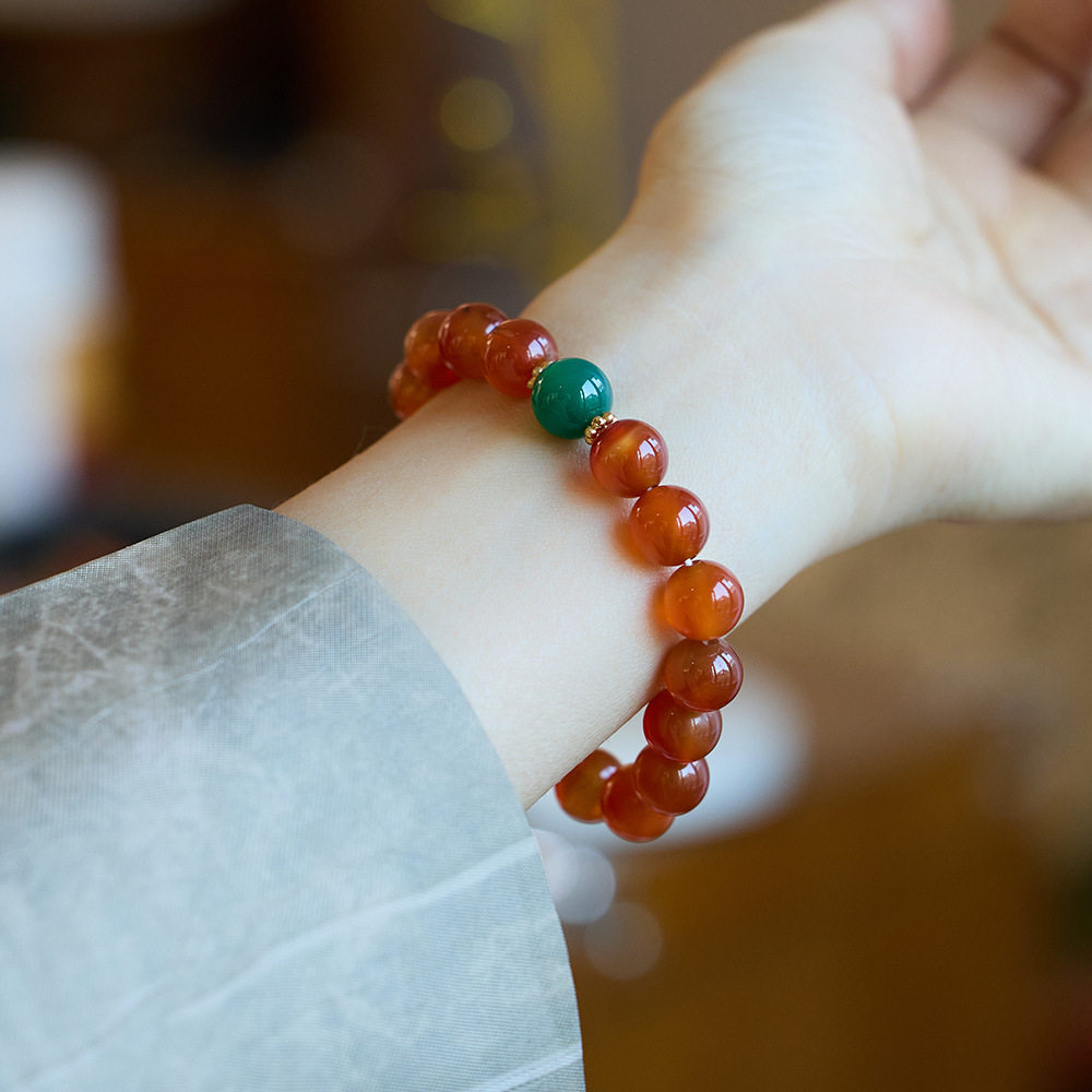XKDDCT天然红女猫眼石串珠手链红色条纹玛瑙手串闺蜜礼物男女通用