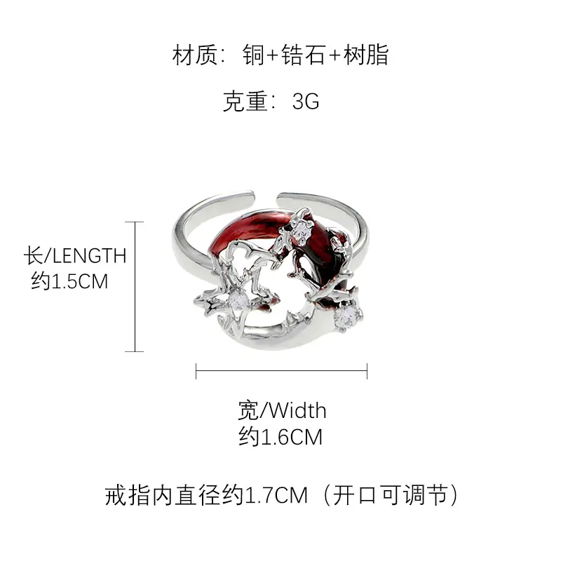 猩红之月戒指女小众高级轻奢2024新款时尚个性指环开口可调节指戒