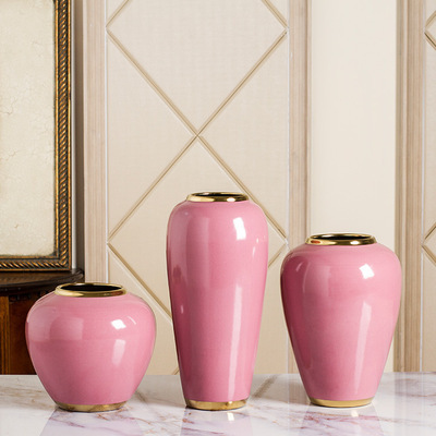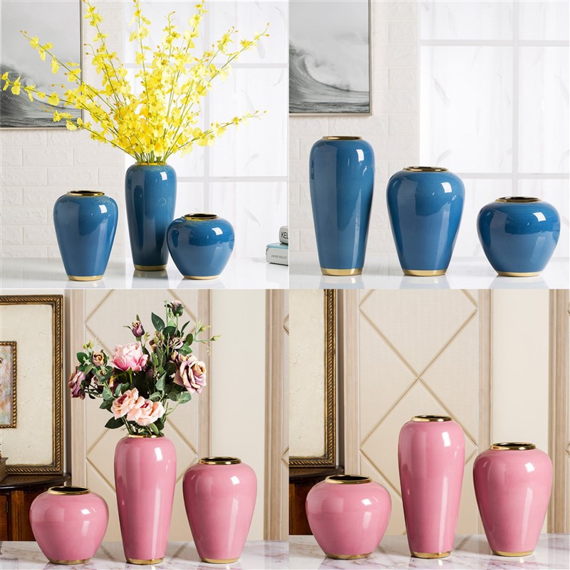 欧式单色釉陶瓷花k瓶摆件小陶罐客厅插花干花摆设简约现代家居装