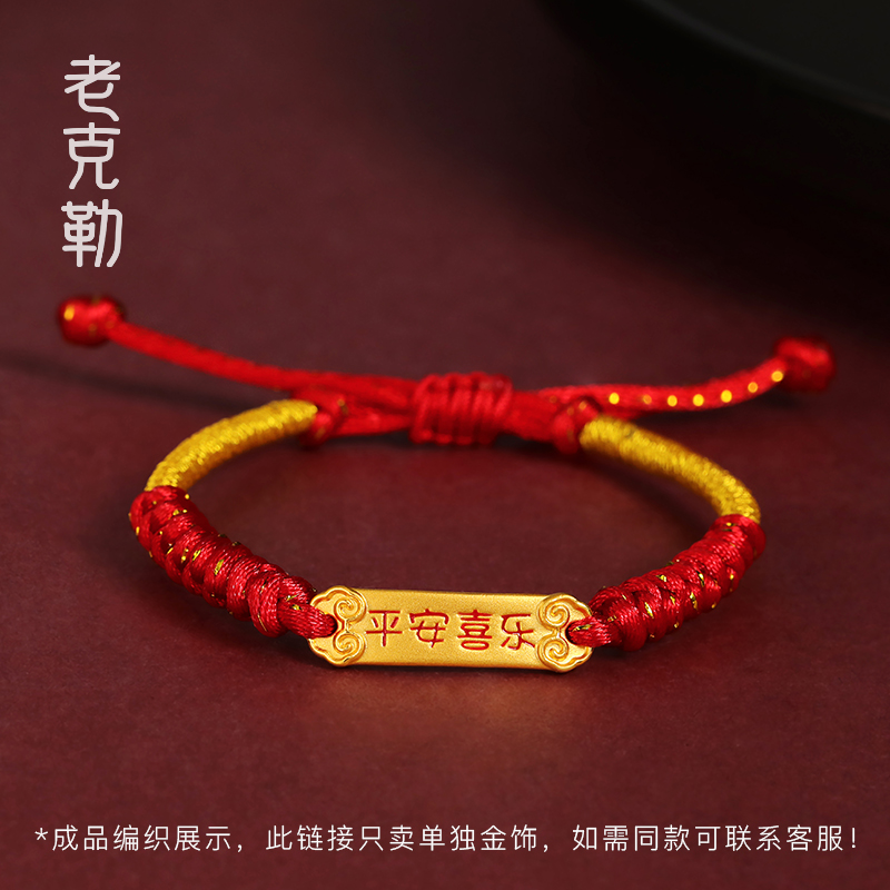 老克勒黄金3D硬金平安喜乐祥云牌足金999手串手绳宝宝diy送礼女