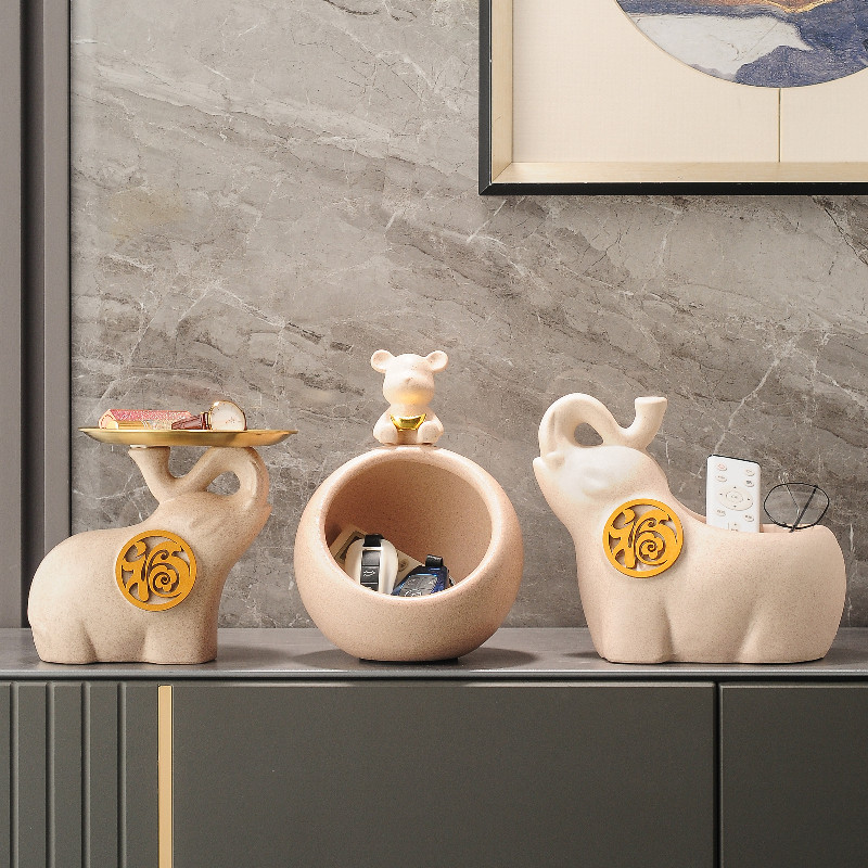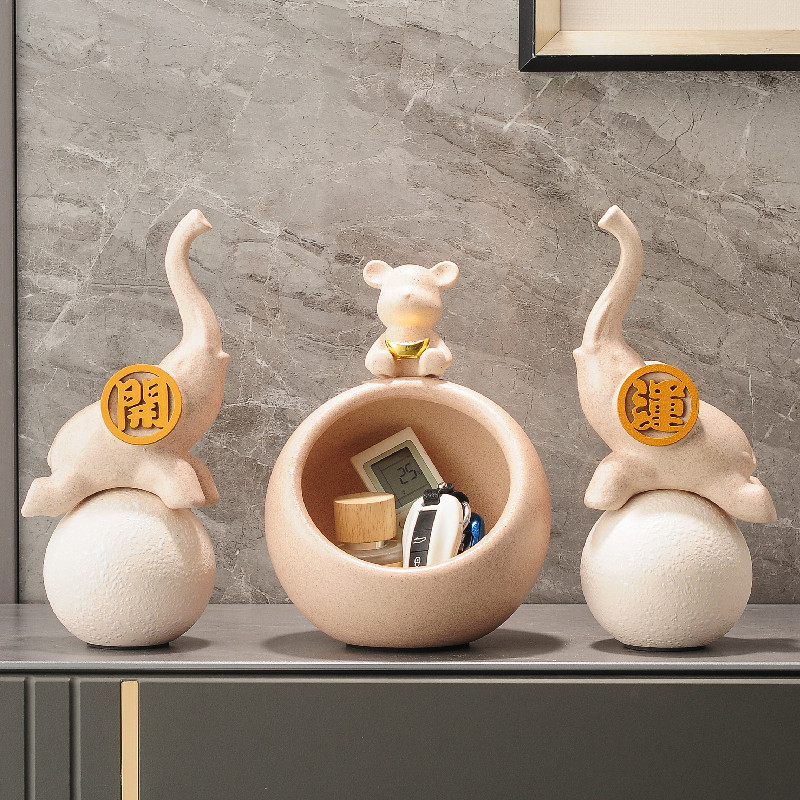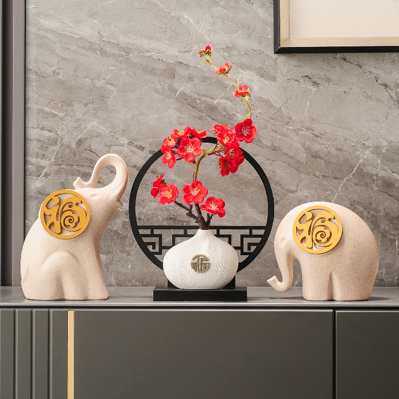 大象摆件一对入户进门口客厅鞋柜玄关屏风隔断装饰品钥匙收纳中式