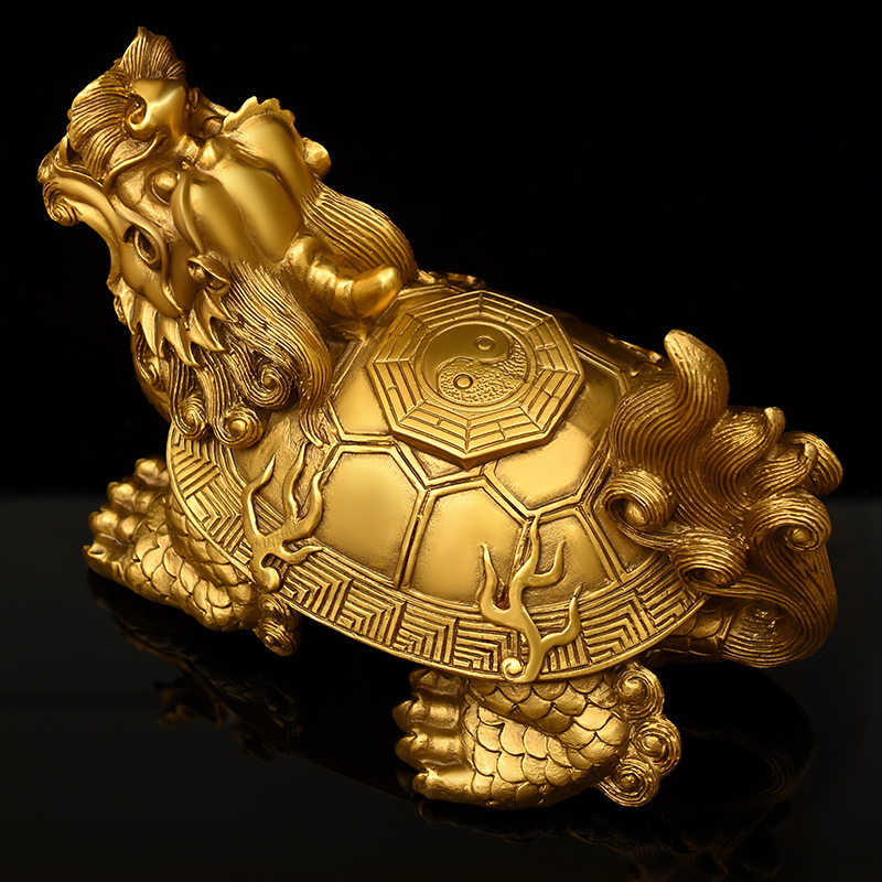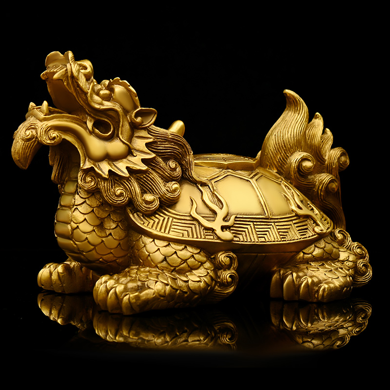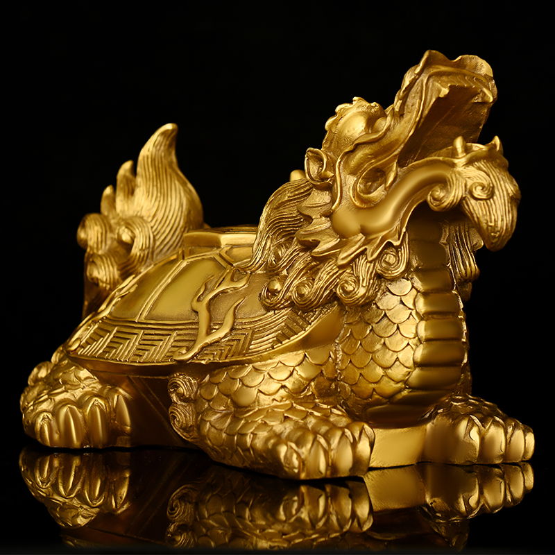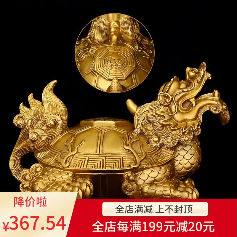 铜龙龟摆件纯铜八卦龙头龟霸下赑屃神兽家居办公室桌面装饰火焰龟