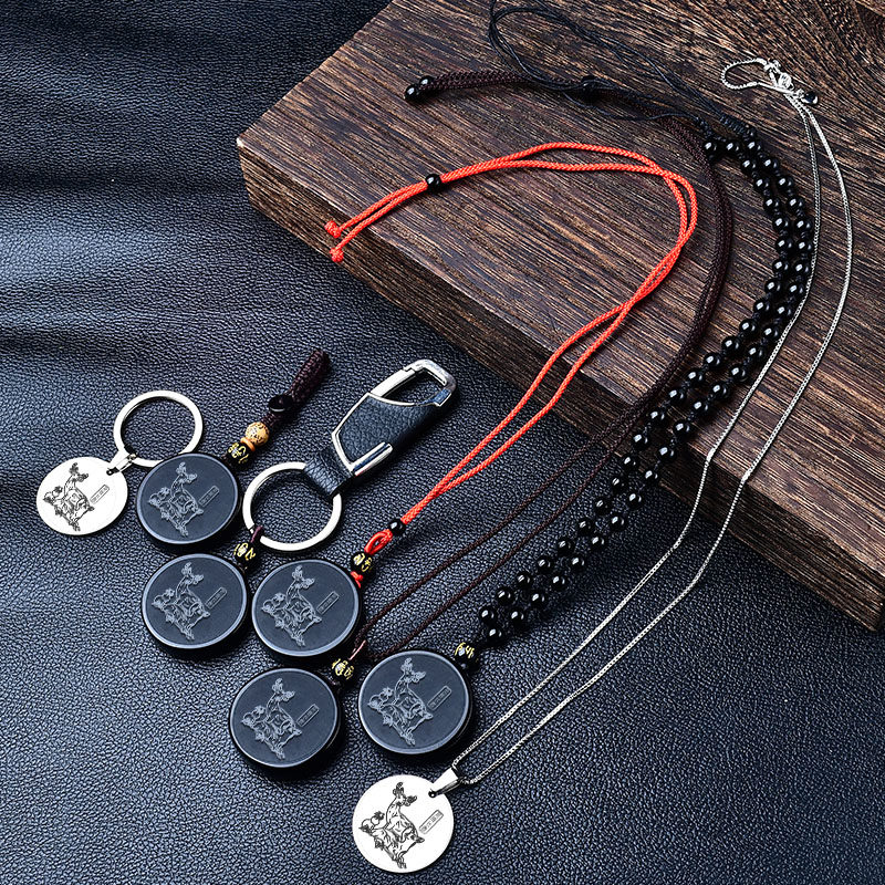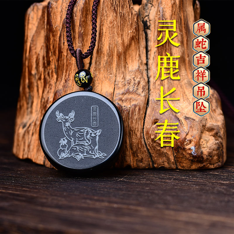 集雅轩宋韶光2026马年吉祥物生肖属蛇灵鹿长春黑曜石吊坠挂件礼品