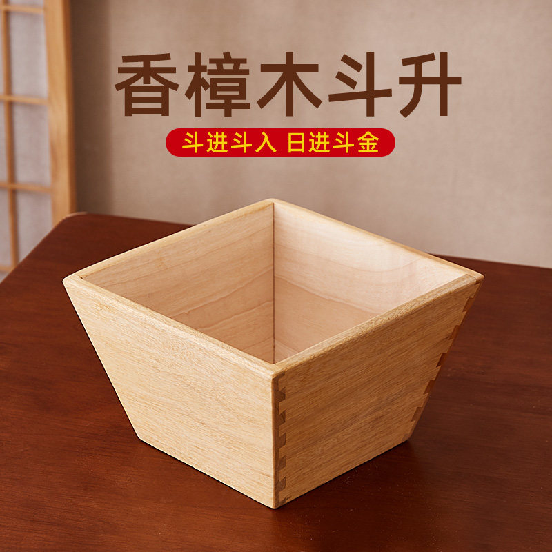 老式实木招财米斗日进斗金客厅香樟木摆件仿古升子店铺开业礼品