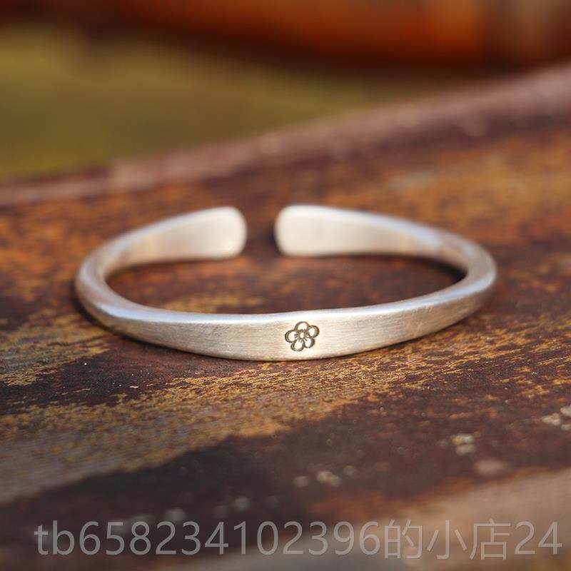 高档999纯银手工原创花设计心磨砂古法覆实梅手镯送古女友闺蜜