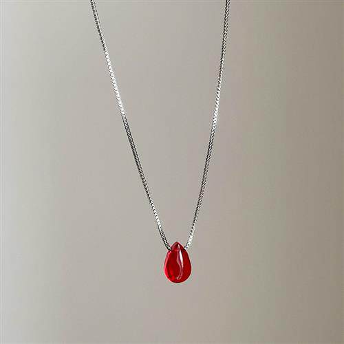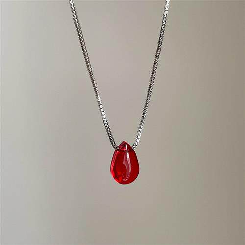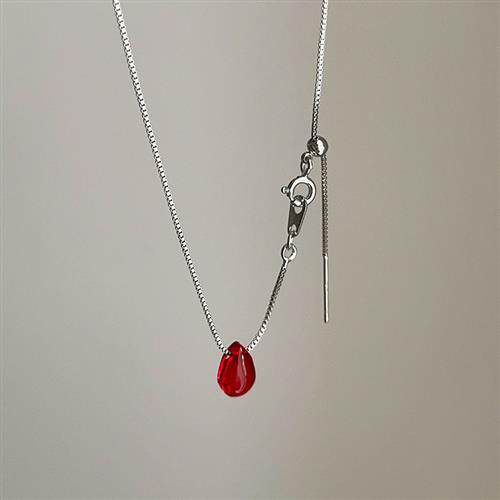 简约百搭红色水滴抽拉项链女小众高级感个性时尚潮流颈链锁骨链