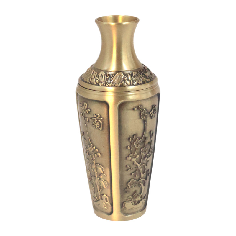纯黄铜花瓶摆件客厅插花家居饰品新中式干花装设摆件创意大花瓶